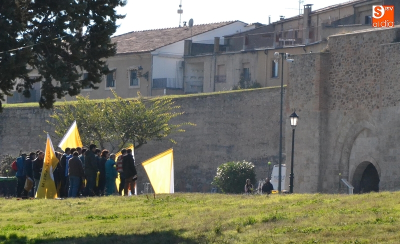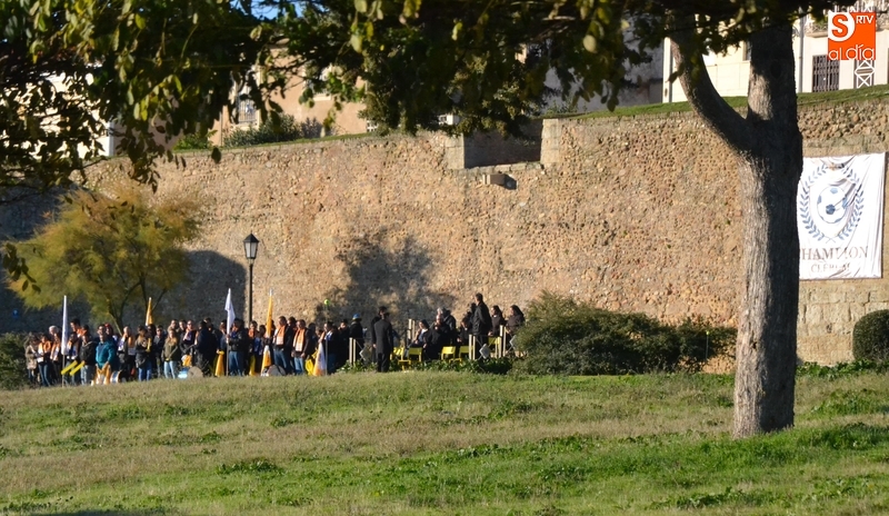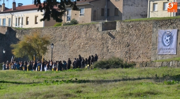 Asimismo, debido a esas restricciones, los mirobrigenses han tenido que conformarse con ver a lo lejos algunos elementos del rodaje, como la hinchada que está siguiendo desde una grada el partido de fútbol entre los equipos de San Teodosio y Vaticanum que se recrea en el foso estos días. Esa hinchada ?en la que hay personas vestidas de monjas y sacerdotes- está formada por numerosos mirobrigenses, que portan bufandas y banderas para animar a los equipos.