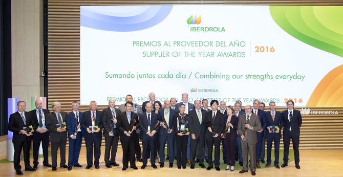 Iberdrola ha entregado hoy los Premios al Proveedor del Año 2016, cuya finalidad es incentivar y reconocer, en la gestión empresarial de sus suministradores, el desarrollo sostenible, la calidad, la innovación, la responsabilidad social corporativa, la diversidad e igualdad, la creación de empleo y la prevención de riesgos laborales.