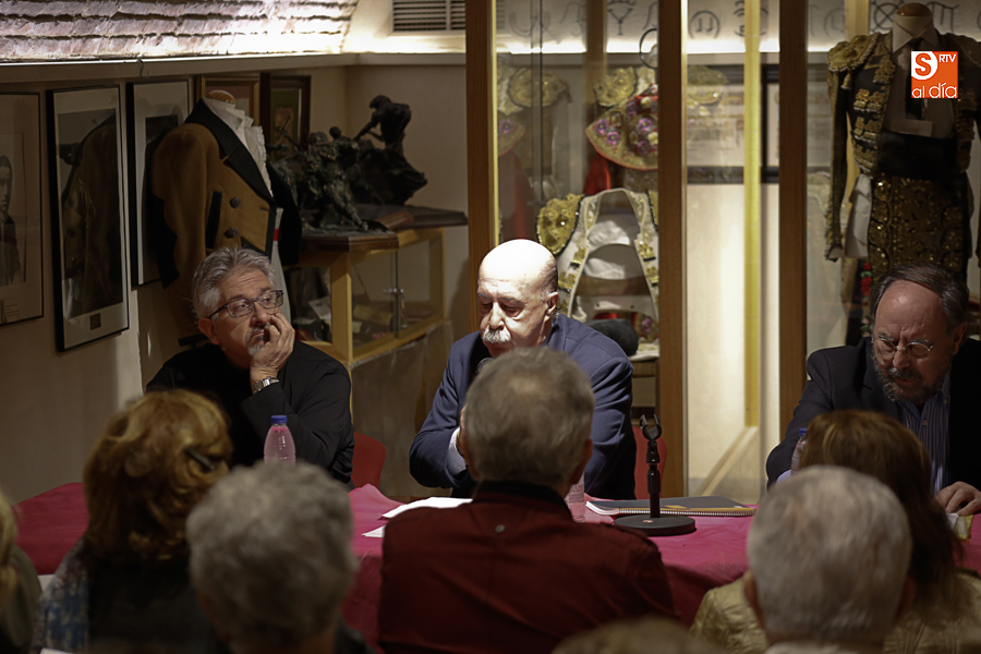 La Federación de Peñas Taurinas de Salamanca ha organizado este viernes un coloquio para analizar la relación entre el Romancero Gitano y los toros. Con el título 'Lorca y los toros', el encuentro, en el Museo Taurino, contó con las intervenciones del catedrático de Literatura y poeta, José Manuel Regalado, Toño Blázquez, rapsoda, y el guitarrista Luiz Fiz.