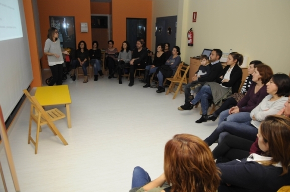 Como se puede ver en la imagen, la primera sesión contó con una buena asistencia de padres y madres interesados en conocer aspectos sobre las necesidades infantiles, el afecto en la familia, el establecimiento de normas y rutinas, el juego o el desarrollo emocional.