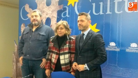 El concejal de Cultura, Julio López, la vicerrectora de Atención al Estudiante y Extensión Universitaria de la Universidad de Salamanca, Cristina Pita, y el presidente de la Delegación de Salamanca del Colegio Oficial de Arquitectos de León, Ángel Herrero, han presentado esta mañana el ciclo de conferencias "Arquitectura: nuevos viejos espacios", que se desarrollará los días 22, 24 y 28 de noviembre y 1 de diciembre en el Auditorio San Blas y en el Colegio Arzobispo Fonseca.
