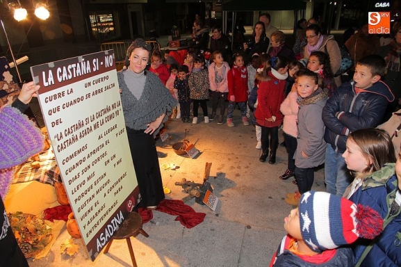 sica tradicional, los integrantes de Asadina invitaron a los presentes, que llegaron a varios cientos de personas, a participar en un divertido juego cantando canciones populares con la letra adaptada a las castañas. La concejala de Cultura, estuvo presente en la castañada y colaboró en el reparto que comenzó poco después de las seis y media de la tarde. Una tradicional cita que gana adeptos cada año y que preserva la cultura local a través de las tradiciones.
