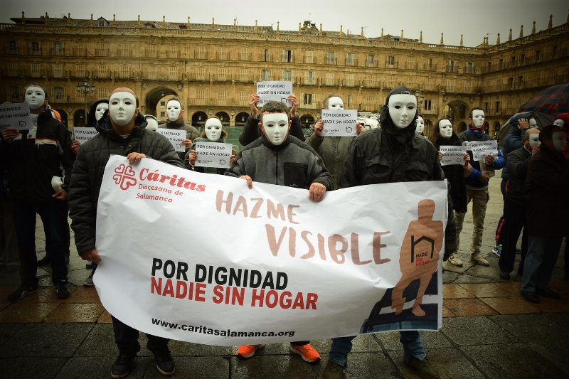 Estos actos de calle, que en Salamanca se han llevado a cabo en la Plaza Mayor, se celebran en el marco del Día de las Persona sin Hogar, que este año se conmemora el 27 de noviembre y que se convoca en España desde hace 24 años impulsada por Cáritas, FACIAM, fePsh (Federación de Entidades de apoyo a las Personas Sin Hogar), XAPSLL (Xarxa d´atenció a Persones sense llar) y BesteBi (Plataforma por la inclusión social y a favor de las personas sin hogar de Bizkaia).