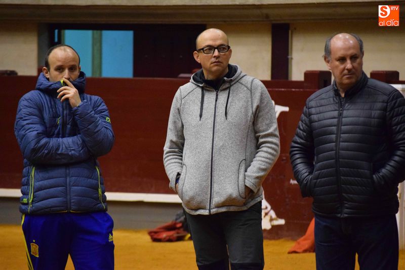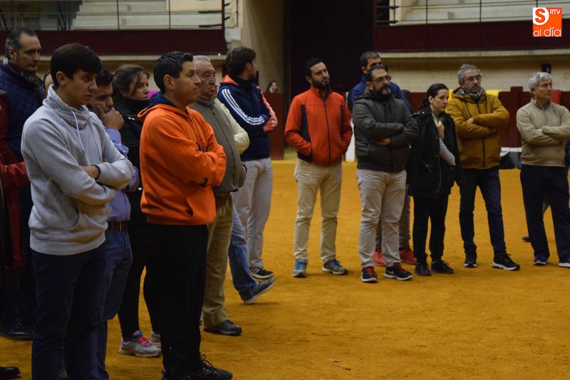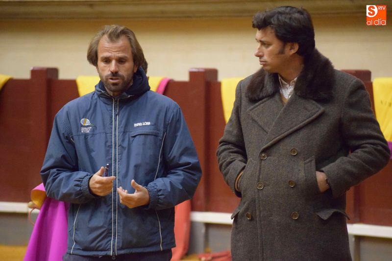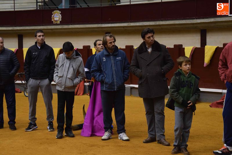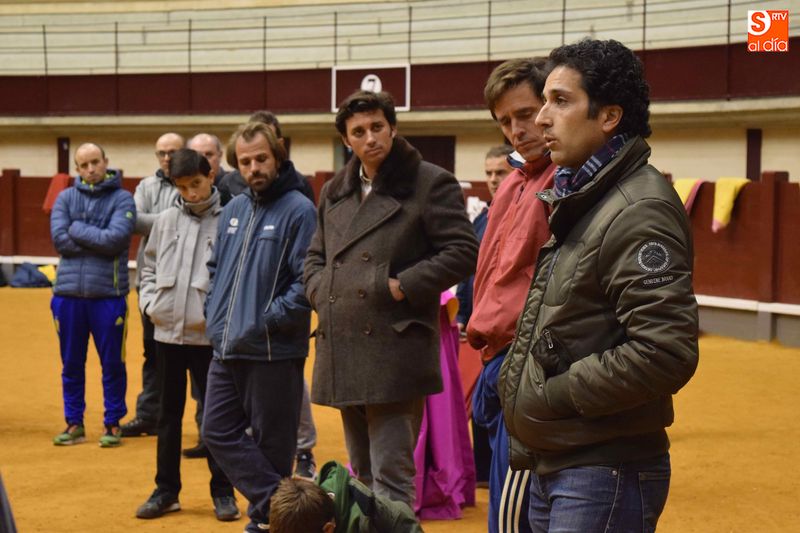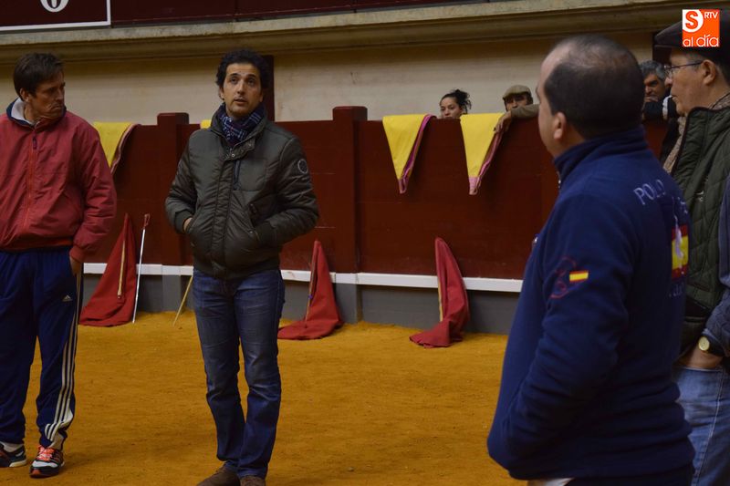 Uno de los platos fuertes del curso para aficionados taurinos organizado por el Club de Aficionados Prácticos Taurinos llegó en este primer día de curso con la clase magistral impartida por el torero leonés Javier Castaño. Durante su intervención, el maestro aconsejó a los participantes en el curso, rememorando algunas anécdotas de su paso por el ruedo y contestando amablemente a todas las preguntas que a estos les iba surgiendo.
