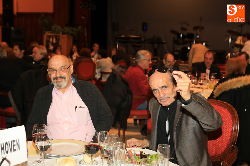 Profeta en su tierra. El compositor salmantino Víctor Reyes, ganador de un Premio Emy, ha recibido un homenaje de susc ompañeros en el Hotel Doña Brígida. La música ha sido la gran protagonita de un reconocimiento que, tras la cena, ha contado con una actuación musical con los grupos con los que estuvo relacionado Víctor antes de trasladarse a Madrid (96 octanos, Bit 32 y Paso a Nivel).