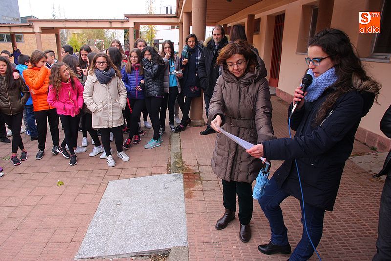 Por su parte, los estudiantes del Vía de la Plata se dieron cita en el patio del edificio 2 donde se leyó otro manifiesto, este a cargo de la estudiante de Bachillerato Esther Benito, en el que animó a todos los presentes a mejorar la situación de la mujer en la sociedad y a condenar todo acto de violencia contra las mujeres. A continuación, varios alumnos soltaron globos violetas que tenían escrito el nombre de mujeres que han fallecido recientemente a manos de sus parejas.