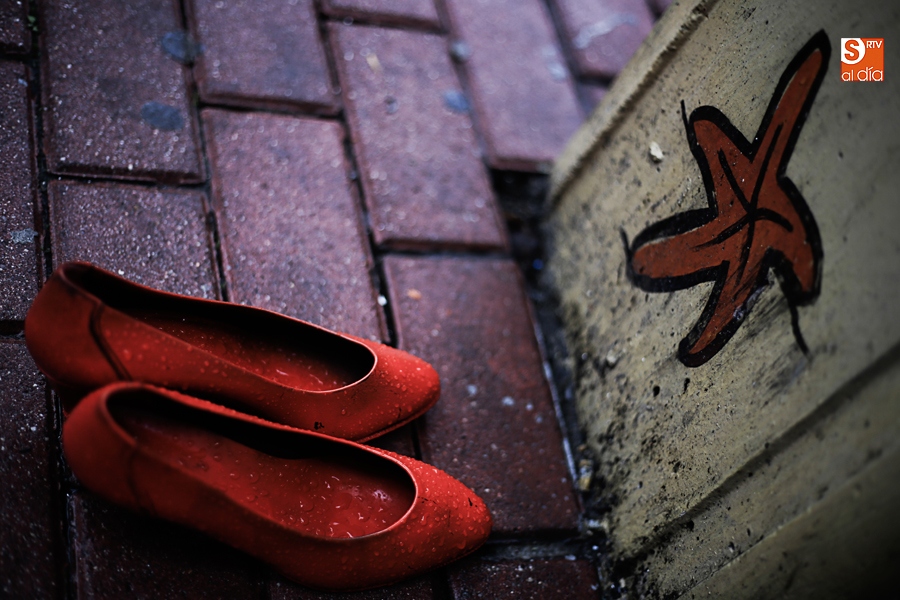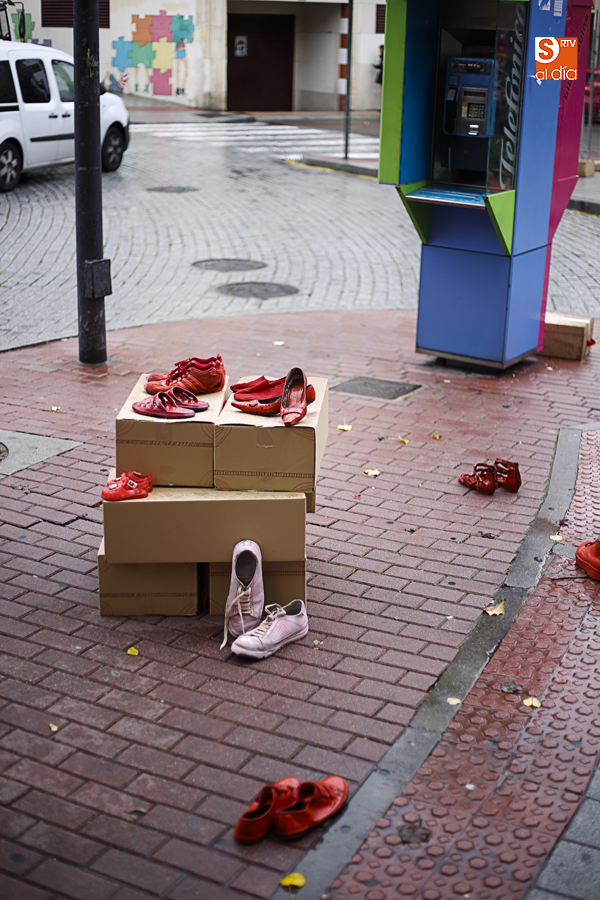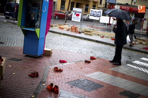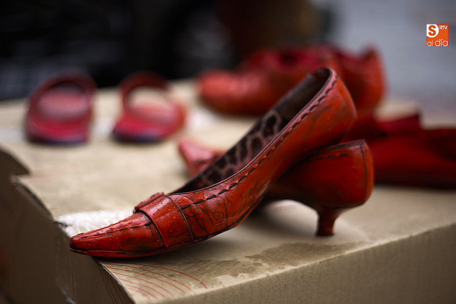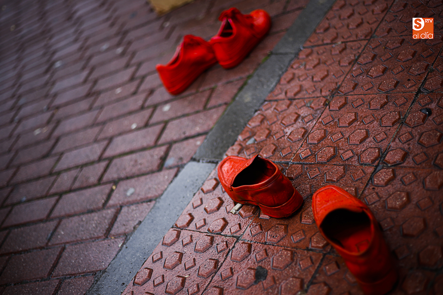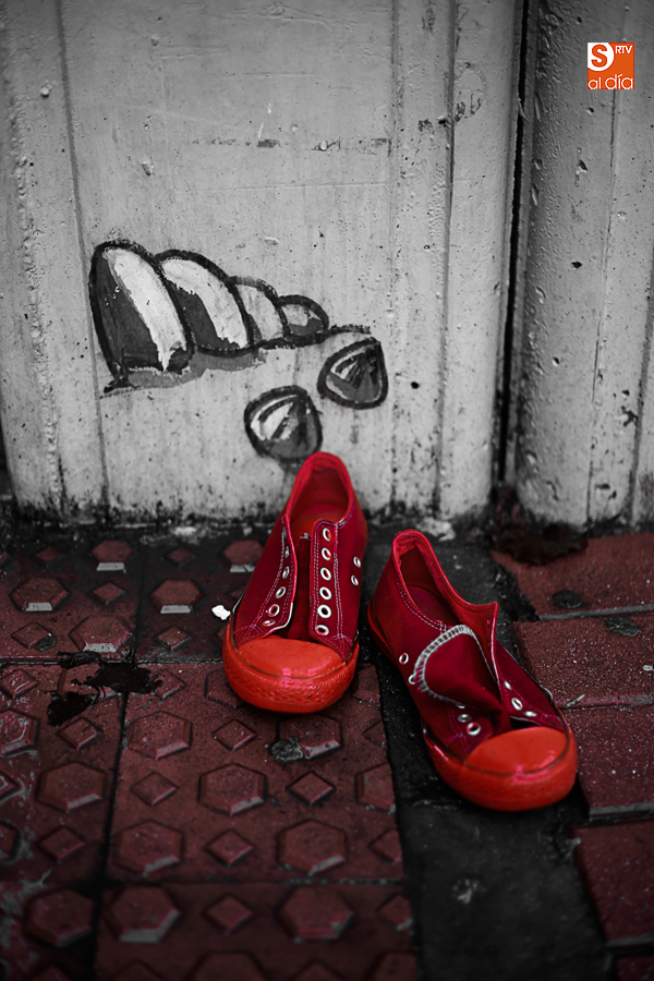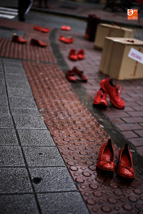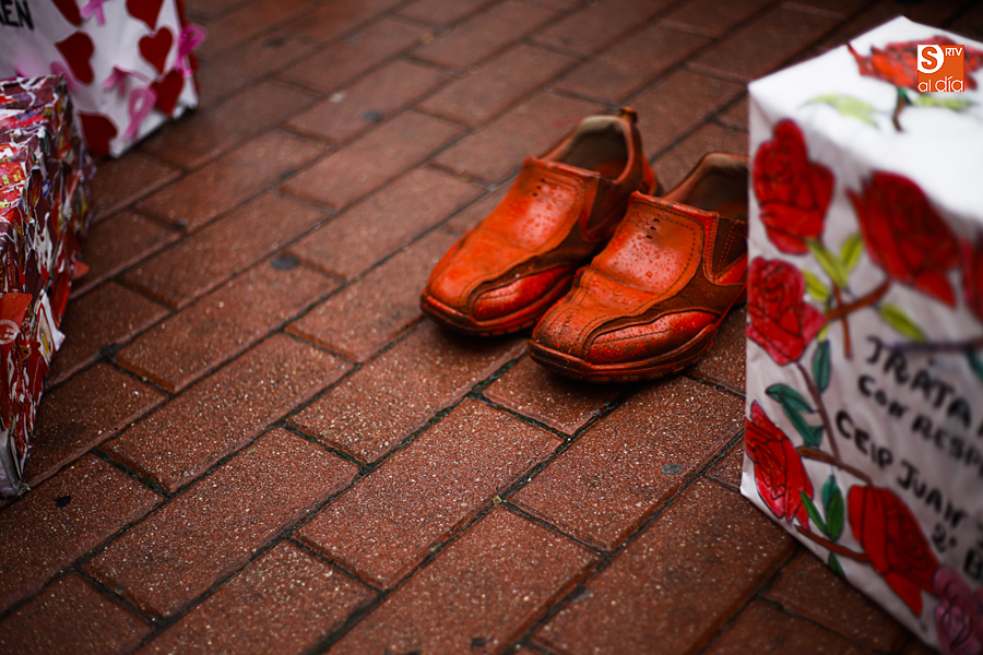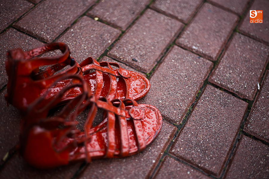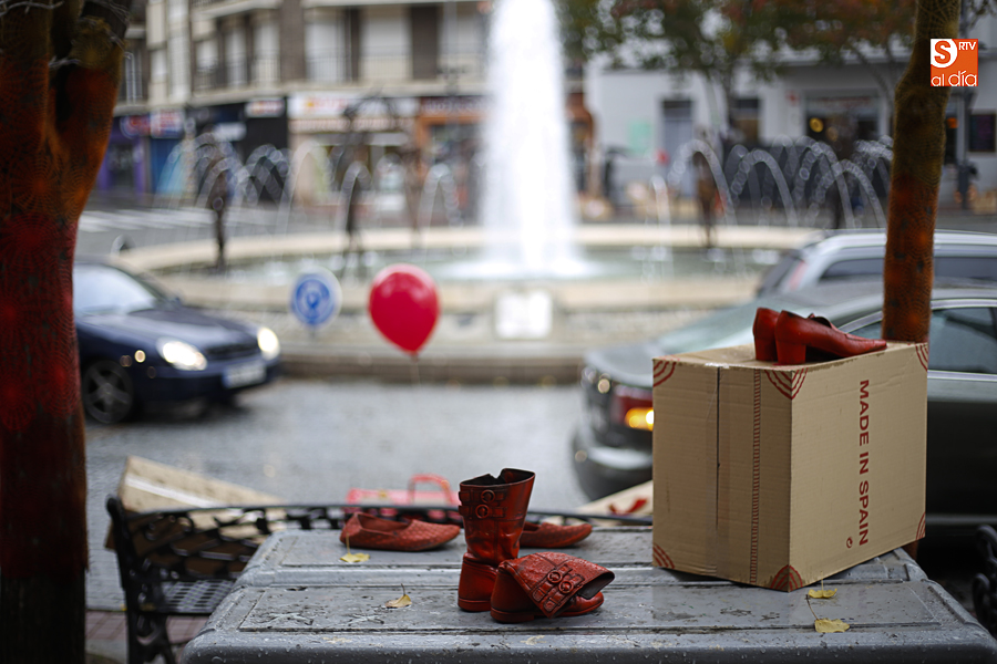Del mismo modo, como el año anterior, en ese espacio urbano se han colocado numerosos pares de zapatos rojos, "como recuerdo a tantas víctimas de la Violencia de Género, es una forma de conmemorar estas víctimas ya que es un símbolo que todo el mundo conoce".