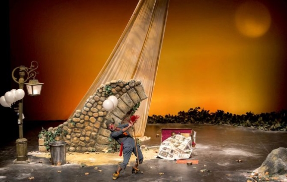 Un divertido barrendero, dulce y torpe, sueña con lanzarse de las ruinas de un puente con la esperanza de algún día poder volar. Este barrendero nos deja ver el ridículo y la ignorancia que hay detrás del abuso de poder. Un poder auto-concedido y del cual él mismo es esclavo y víctima. Y al salir el sol el encuentro es inevitable......