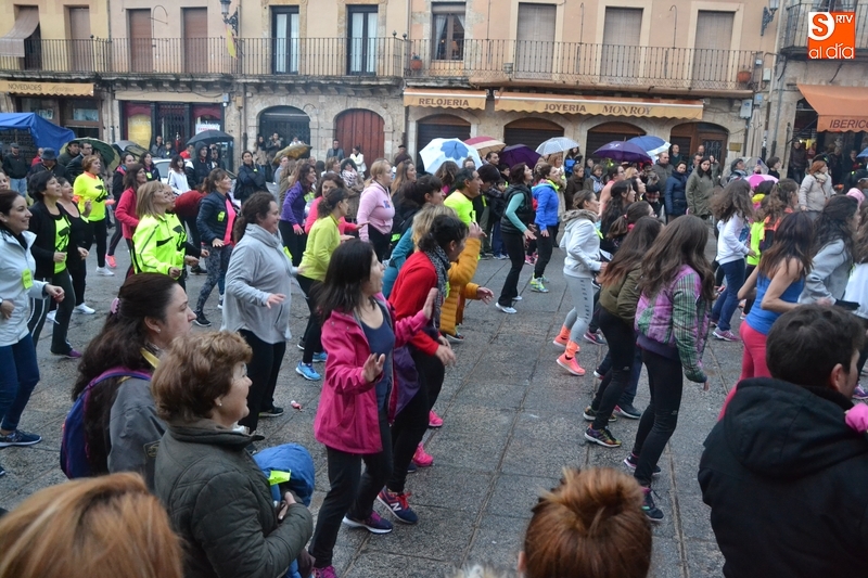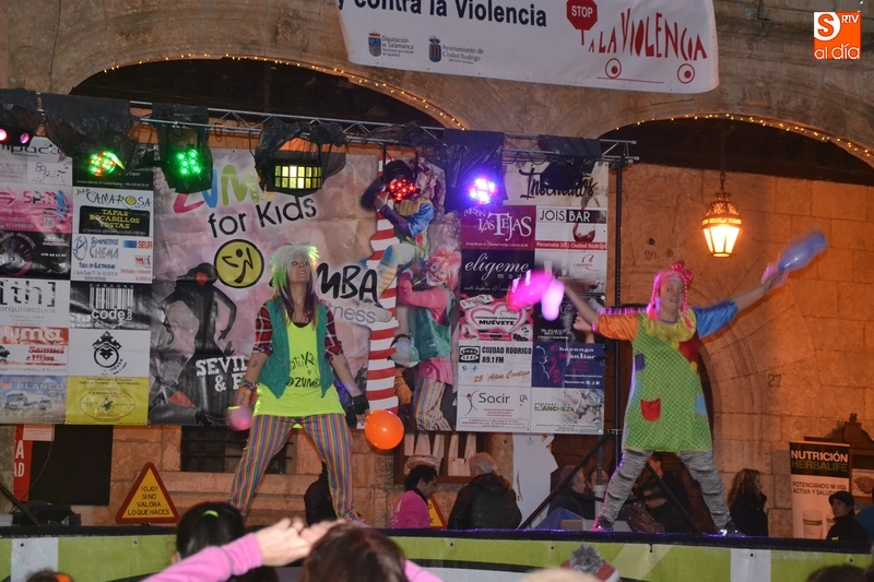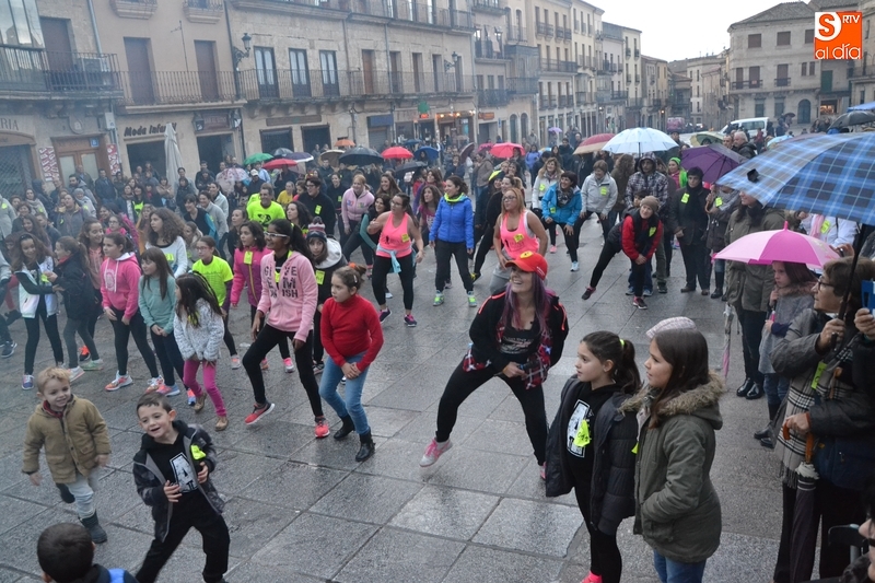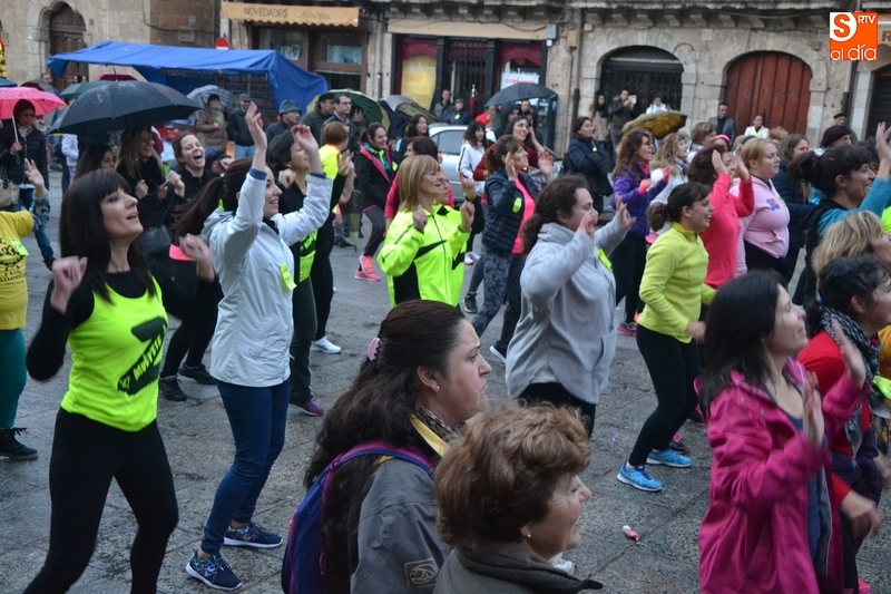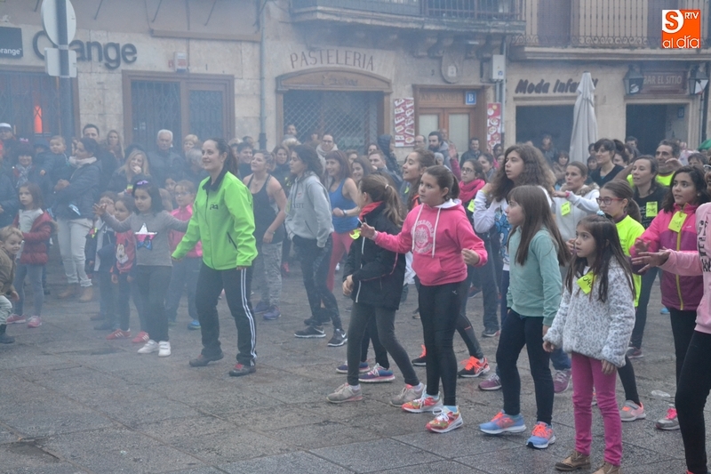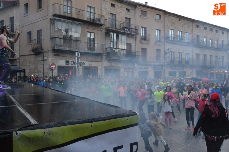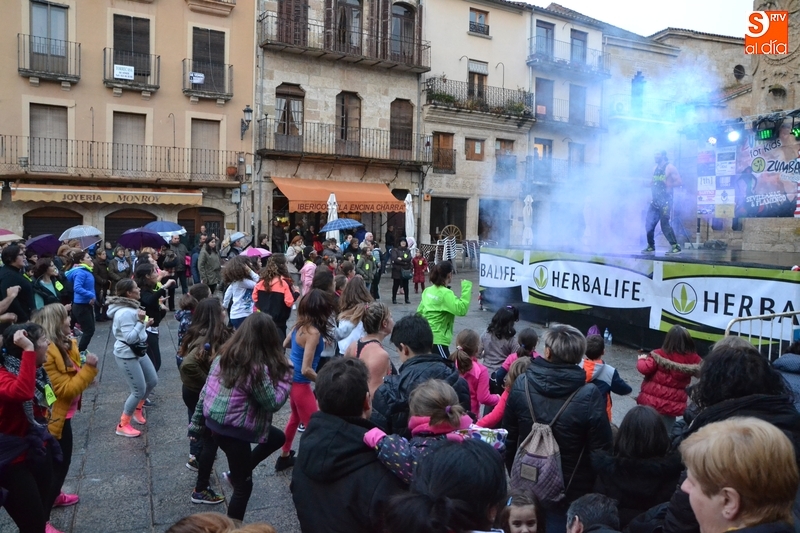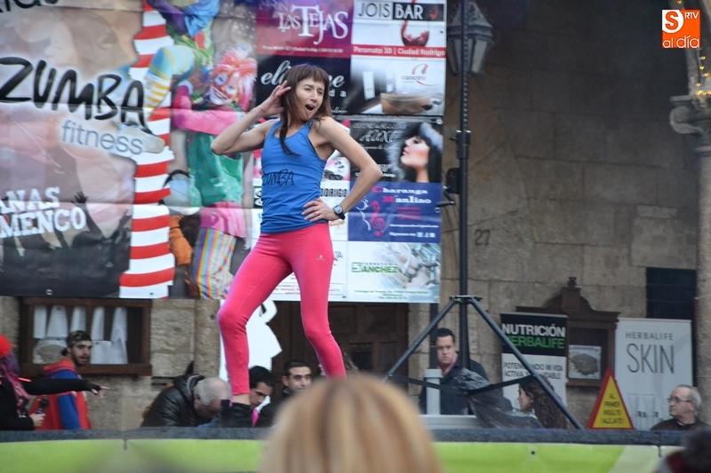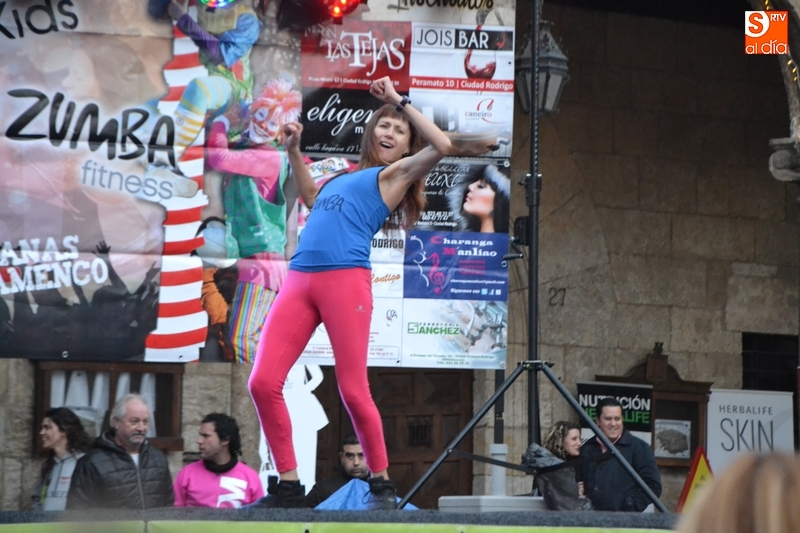 Concretamente fueron pasando por el escenario las Zumba Sisters, Mayka y Rosa; Helena, del gimnasio H. Gym Tonic; Jesús Misol de Valladolid, e Irina Sequeira. Además, en el tramo final, también subieron al escenario los payasos Bobolino y Piruleta, para seguir bailando. Entre todos los presentes, tanto los que bailaron como los que no, hubo un sorteo de regalos para concluir la tarde, que contó una finísima lluvia en algunos momentos.