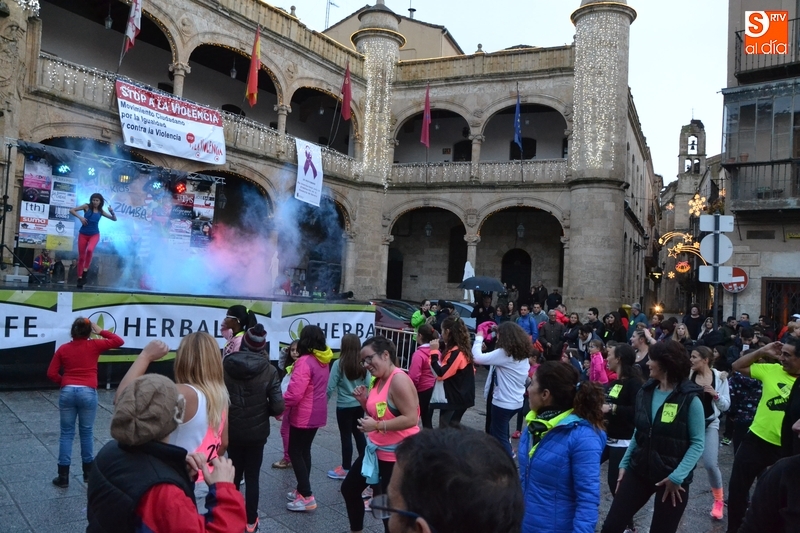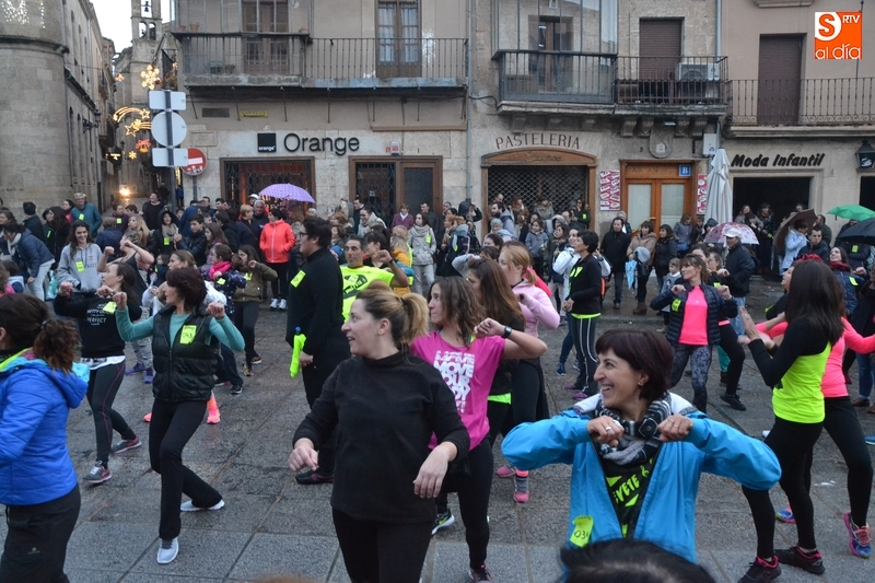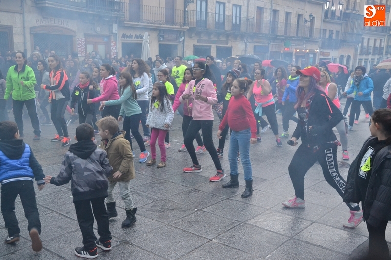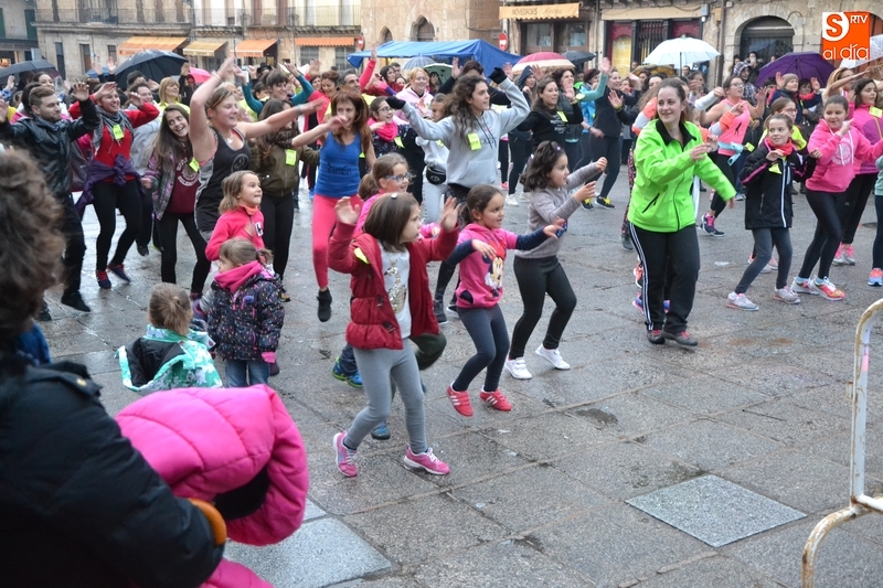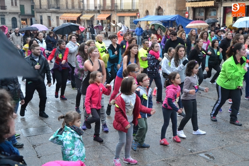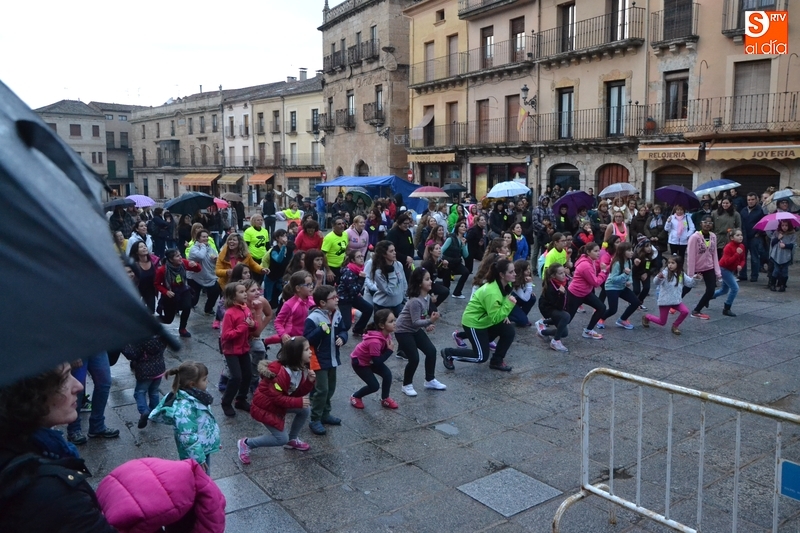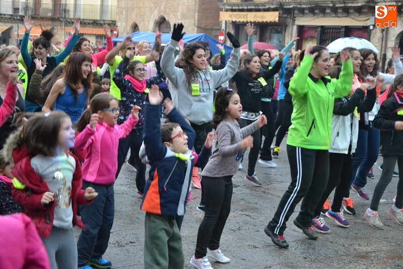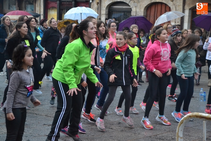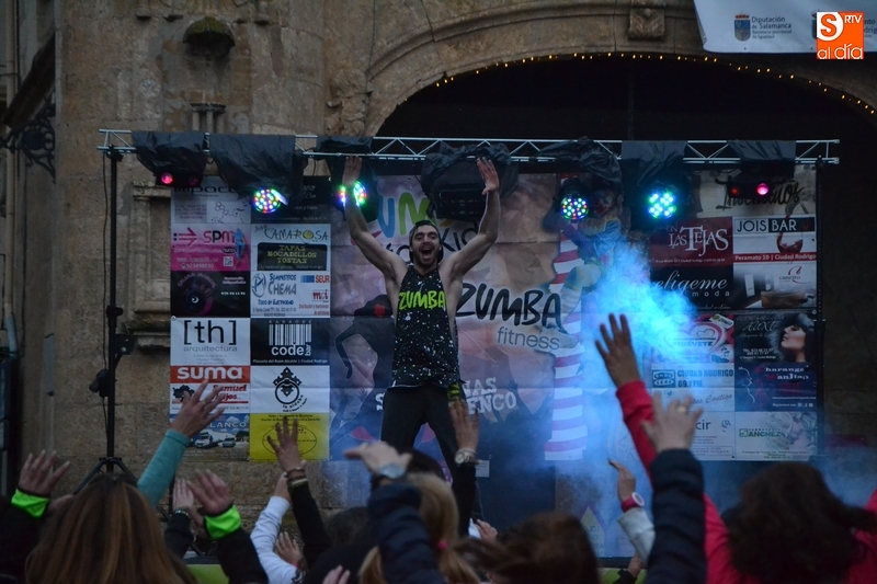 Concretamente fueron pasando por el escenario las Zumba Sisters, Mayka y Rosa; Helena, del gimnasio H. Gym Tonic; Jesús Misol de Valladolid, e Irina Sequeira. Además, en el tramo final, también subieron al escenario los payasos Bobolino y Piruleta, para seguir bailando. Entre todos los presentes, tanto los que bailaron como los que no, hubo un sorteo de regalos para concluir la tarde, que contó una finísima lluvia en algunos momentos.