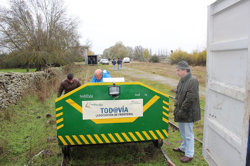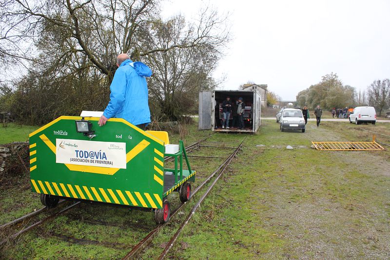 Desafiando a las inclemencias meteorológicas del día y la desidia de de buena parte de las administraciones, la asociación Tod@vía ha constatado una vez más las enormes posibilidades de reutilización de esta vía férrea de frontera y la necesidad de que se hagan cuanto antes las actuaciones necesarias para evitar el progresivo deterioro de esta singular infraestructura. La Asociación de Frontera Tod@vía persigue, como es conocido, la recuperación y reutilización de la vía La Fuente de San Esteban -Barca d'Alva, Bien de Interés Cultural con categoría de Monumento, y su manera de reivindicar este objetivo es limpiando el terreno, habilitando puentes, quitando la vegetación invasora o, como hoy, demostrando su viabilidad y potencial turístico haciendo cortos recorridos por la vía férrea en la estación de Lumbrales con vehículos ligeros de su propiedad.