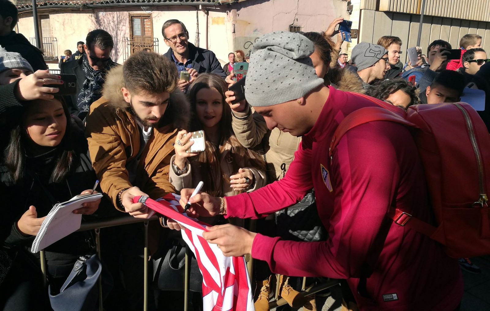Cientos de aficionados se acercaron a conocer a las estrellas del equipo colchonero a su llegada la capital para el partido contra el CD Guijuelo