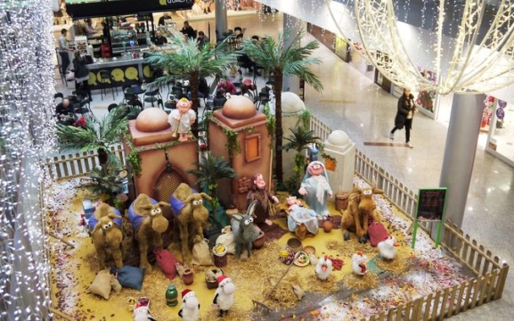 El Centro Comercial El Tormes se ha vestido ya de Navidad. Además de la iluminación exterior, que se podrá apreciar a partir de esta tarde-noche, el centro luce ya en el interior su decoración navideña, con grandes bolas doradas, cortinas de luces, el tradicional árbol de Navidad, y un Belén animado que está ubicado en la plaza central y cuyos personajes se ponen en marcha cada media hora para bailar y cantar al ritmo de los villancicos.