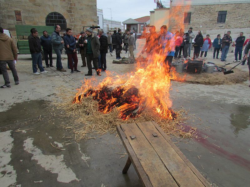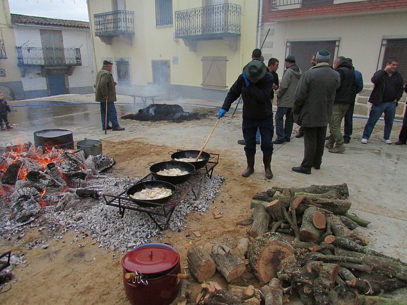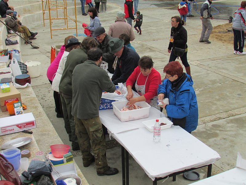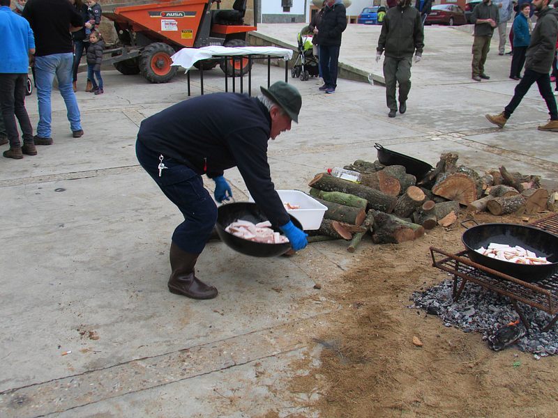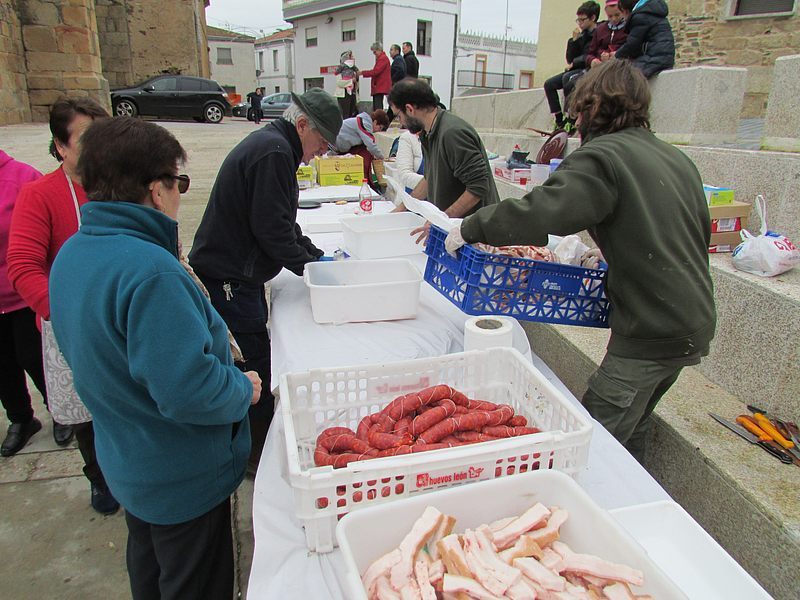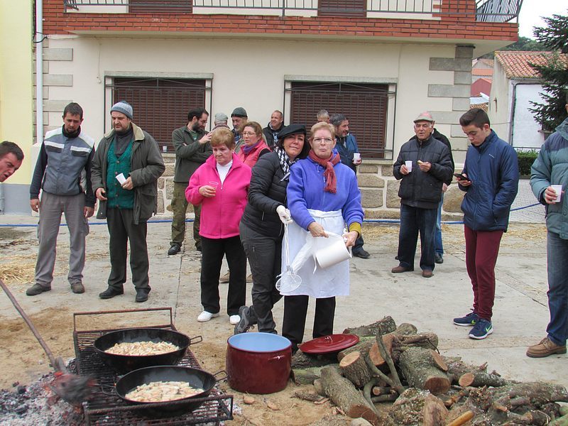 En esta celebración el Ayuntamiento puso todos los ingredientes necesarios para darle todo el sabor a la matanza, por lo que faltaron las perrunillas y el aguardiente, además del vino para la degustación posterior que haría de almuerzo y a la que se sumaban productos como el hornazo o los engañotes.