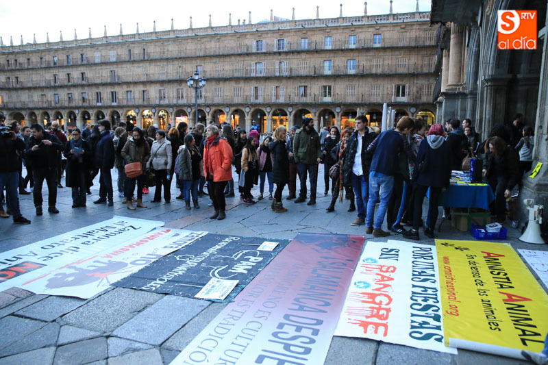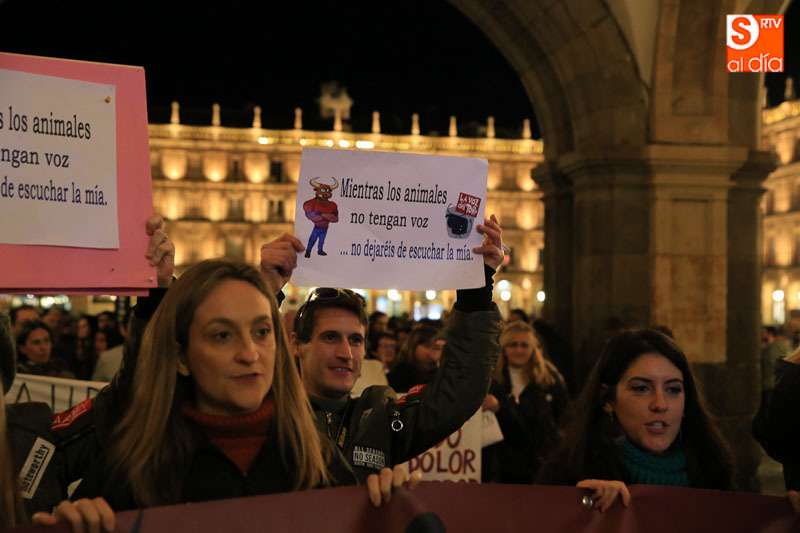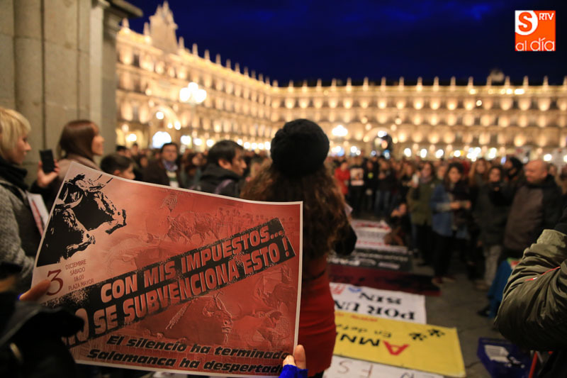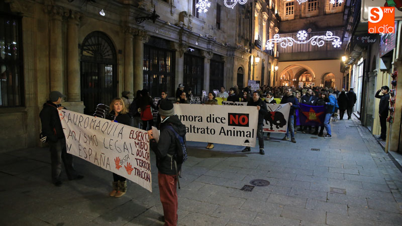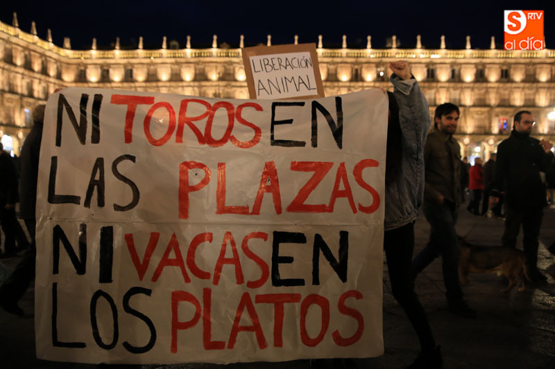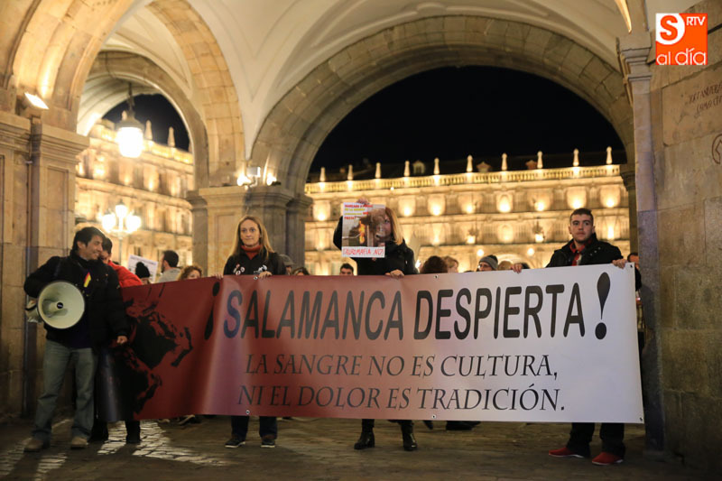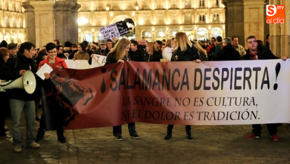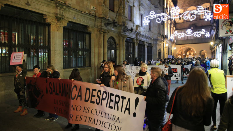 "¡¡Salamanca, despierta!! 3D". Este es el lema de una manifestación antitaurina por el cese de las subvenciones públicas a las escuelas taurinas, que se llevaba a cabo este sábado, en la capital charra. La marcha partía desde la Plaza Mayor hasta la Plaza de Toros "La Glorieta". Antes de llegar a su destino, en la plaza de los Bandos, se leía el manifiesto. Y un poco más adelante, ya en la calle Zamora, un alumno de la Escuela de Tauromaquia de Salamanca se colocaba en un lateral con un capote. Si bien, no hubo que lamentar ningún incidente.