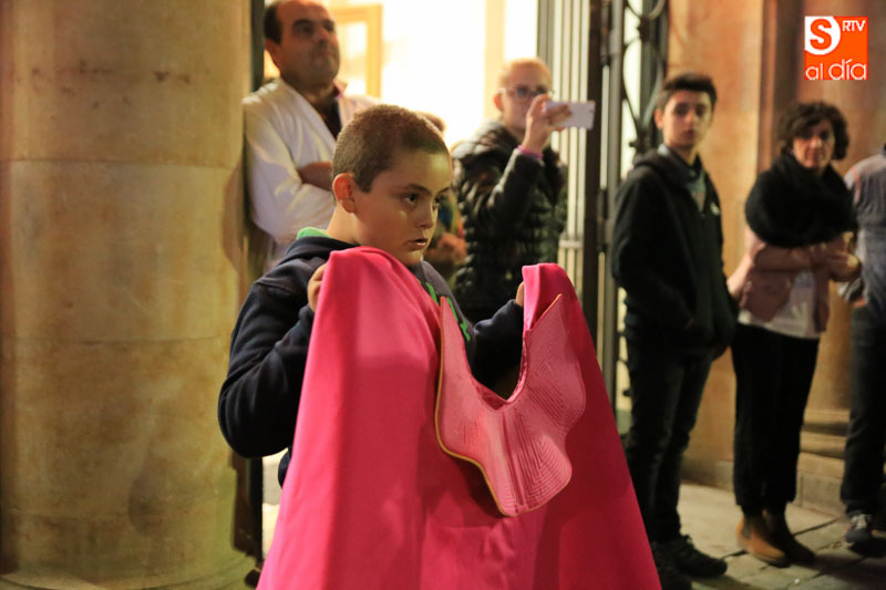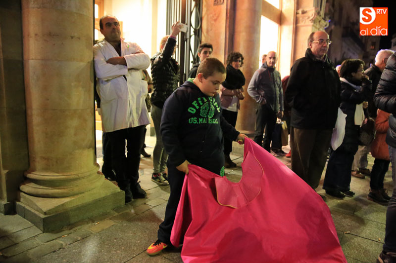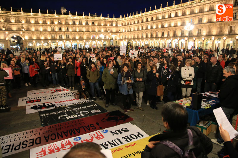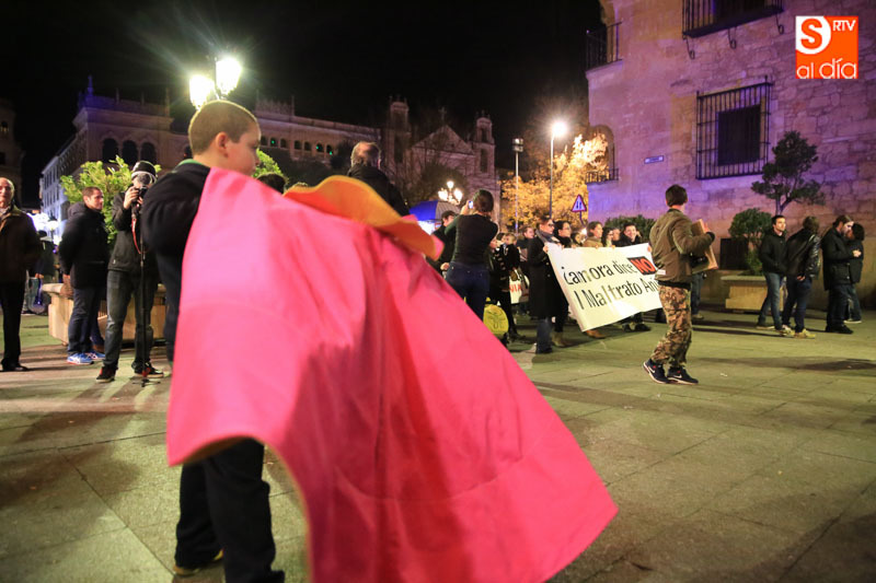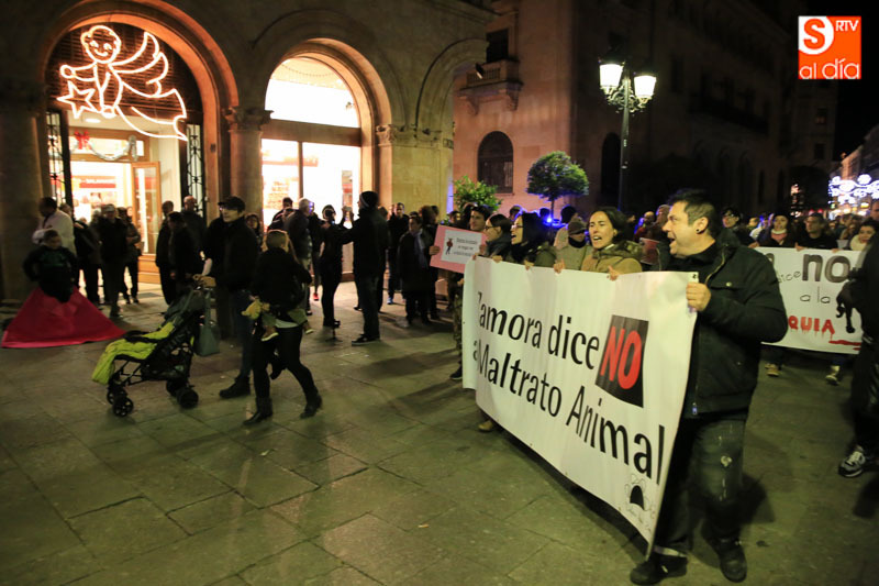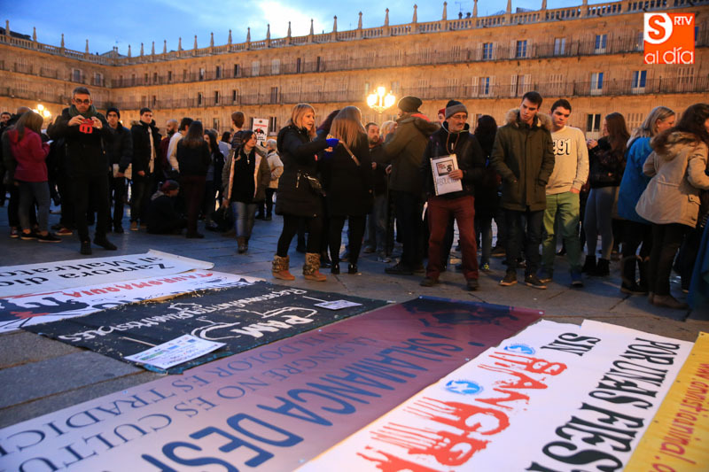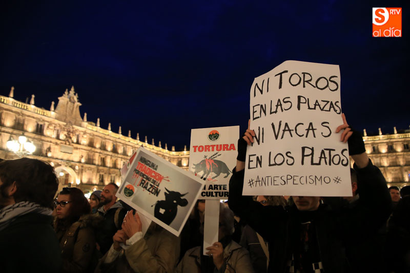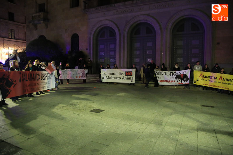 "¡¡Salamanca, despierta!! 3D". Este es el lema de una manifestación antitaurina por el cese de las subvenciones públicas a las escuelas taurinas, que se llevaba a cabo este sábado, en la capital charra. La marcha partía desde la Plaza Mayor hasta la Plaza de Toros "La Glorieta". Antes de llegar a su destino, en la plaza de los Bandos, se leía el manifiesto. Y un poco más adelante, ya en la calle Zamora, un alumno de la Escuela de Tauromaquia de Salamanca se colocaba en un lateral con un capote. Si bien, no hubo que lamentar ningún incidente.