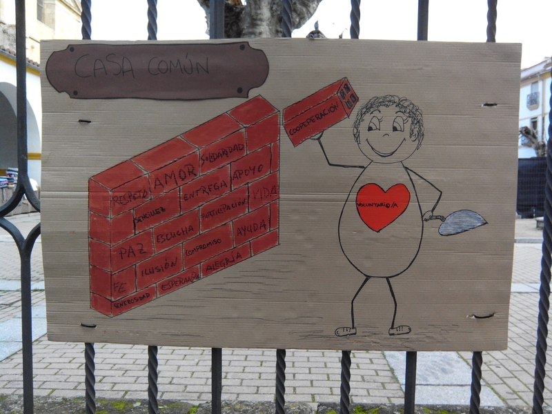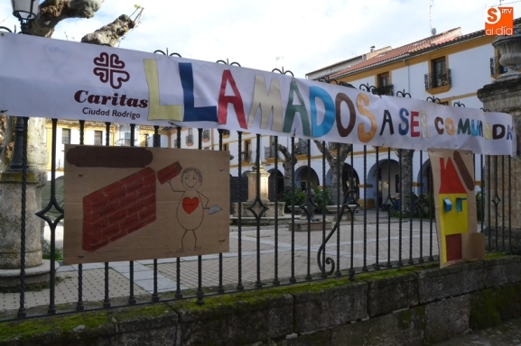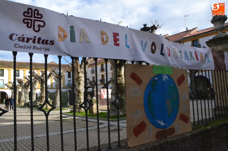 Esa conmemoración callejera de Cáritas, enmarcada en su campaña 'Llamados a ser Comunidad', consistió en el despliegue de una sencilla instalación en el enrejado de la Plazuela del Buen Alcalde de Ciudad Rodrigo, a través de la cual quien destacar cómo los voluntarios "contribuyen a construir la Casa Común".