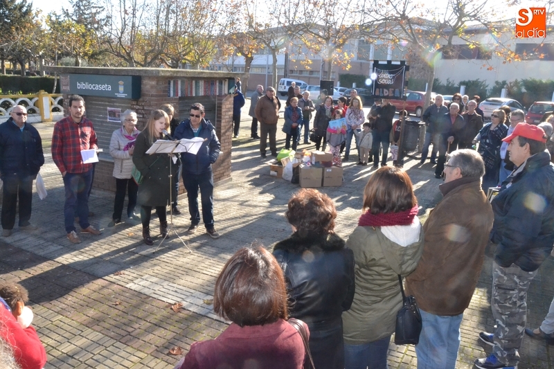 Como cierre de las intervenciones, el presidente del CSA Aldea, Toño Solórzano, rescató un artículo de la BBC sobre los puntos de lectura creados entre las bombas de la guerra de Siria. A continuación, se levantaron las persianas de la Bibliocaseta y se abrió su puerta para que todos los presentes empezasen a llenarla otra vez de libros. Para festejar la reapertura, hubo un pequeño convite.