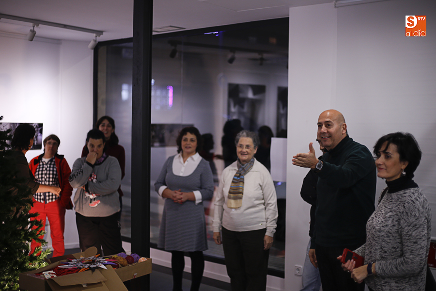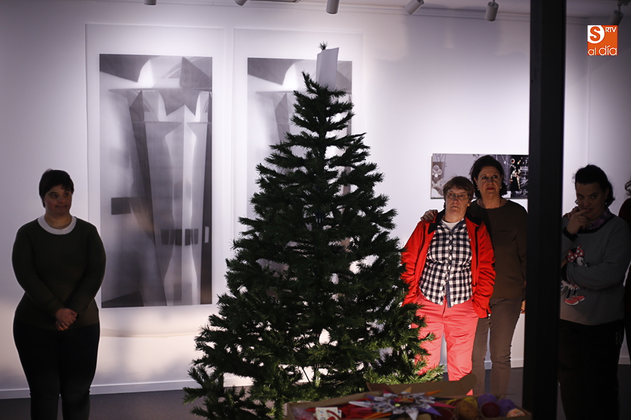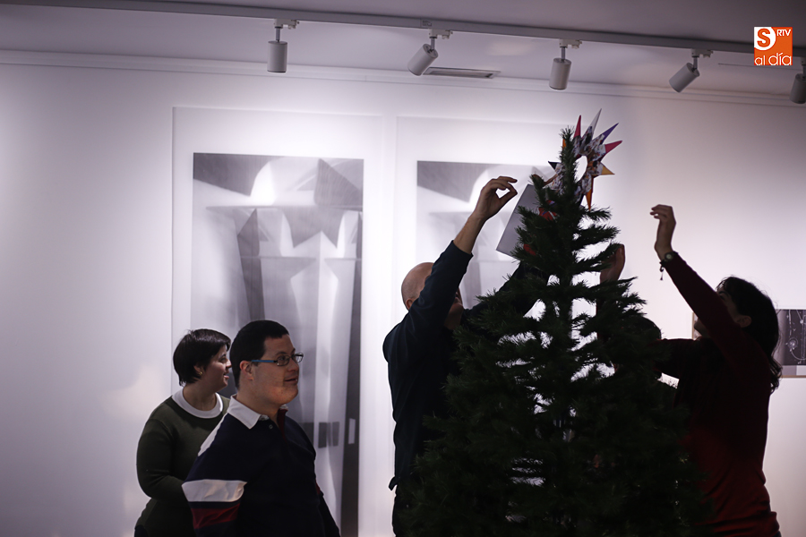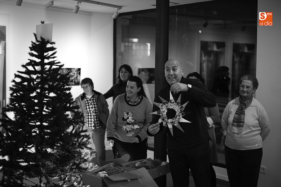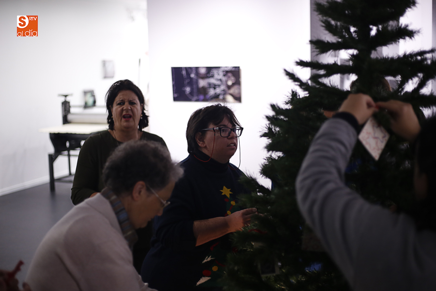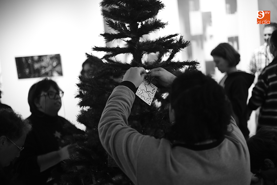 De esta manera, los participantes en el taller de artes plásticas y visuales de Aviva han realizado una serie de pequeñas tarjetas decoradas a mano que esta tarde han sido colgadas por ellos mismos en el árbol de Navidad de La Calcografía en una actividad que se ha convertido en una pequeña fiesta con canciones y dulces para todos los asistentes.