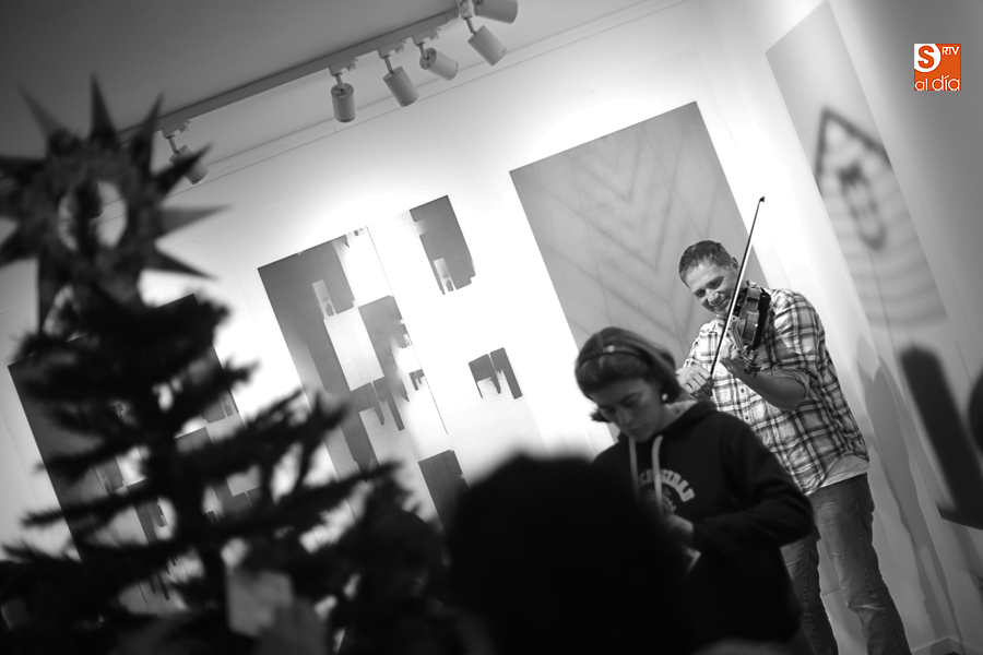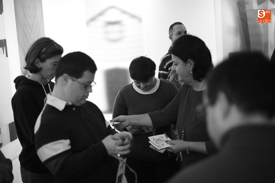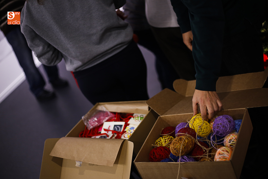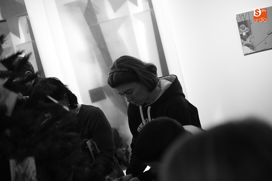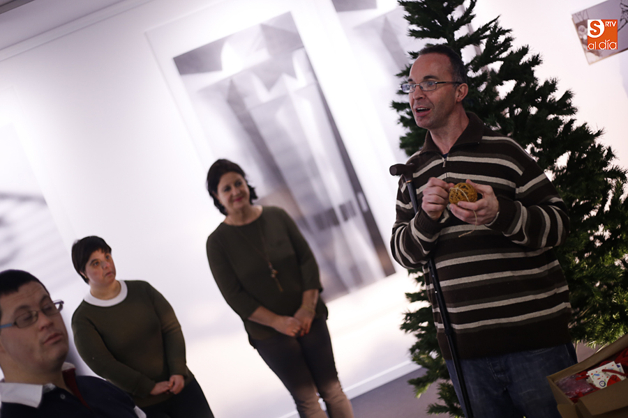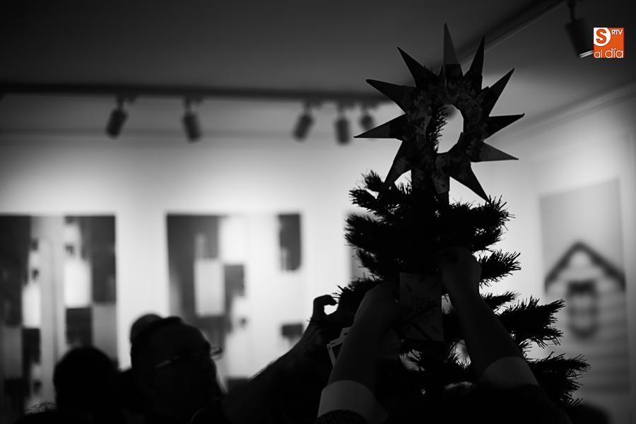 De esta manera, los participantes en el taller de artes plásticas y visuales de Aviva han realizado una serie de pequeñas tarjetas decoradas a mano que esta tarde han sido colgadas por ellos mismos en el árbol de Navidad de La Calcografía en una actividad que se ha convertido en una pequeña fiesta con canciones y dulces para todos los asistentes.