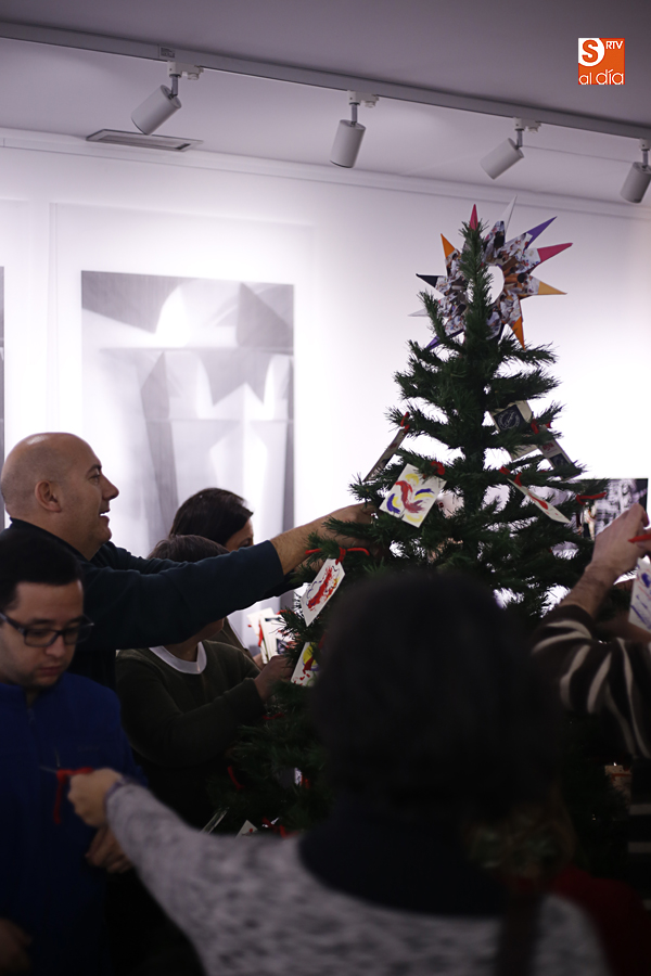 Tarjetas realizadas por miembros de Aviva decoran el árbol de Navidad de La Calcografía