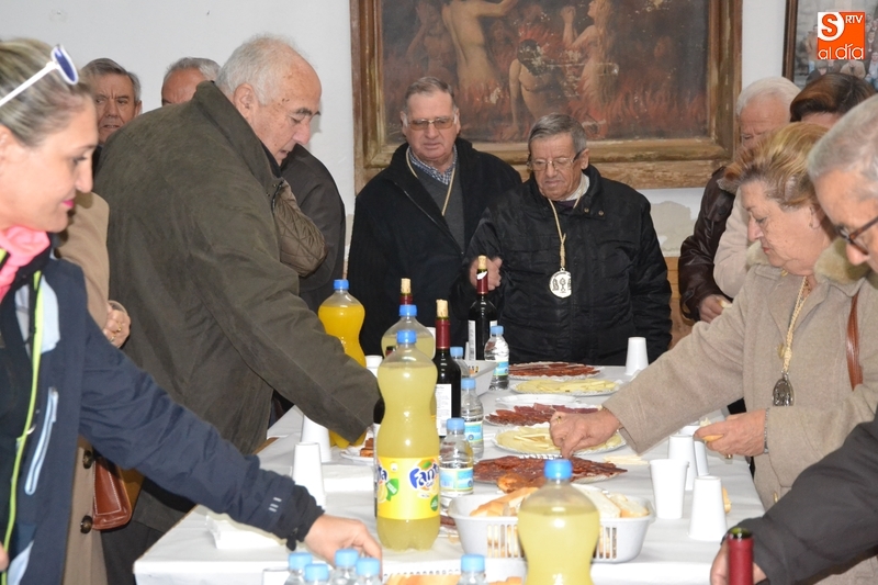 Concluida la celebración eucarística, todos los presentes se desplazaron al salón parroquial, donde tuvo lugar la Asamblea Ordinaria Anual de la Cofradía y un convite. Durante ese acto se repartieron entre los cofrades los talonarios de papeletas para el sorteo del aguinaldo de San Antón, que consistirá en tres lotes de variados productos y un cebón ibérico.