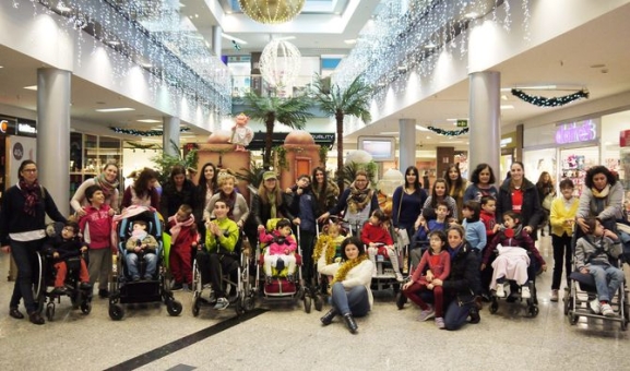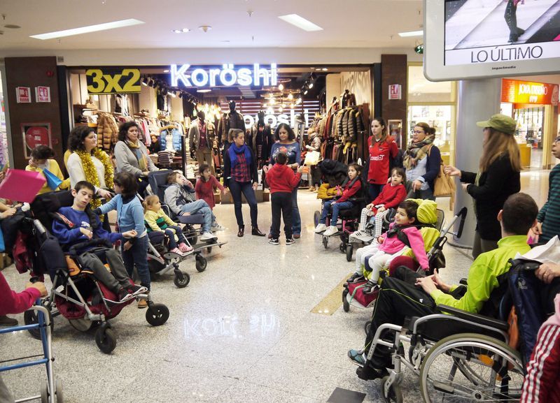 Niños y familiares de Aspace Salamanca han visitado esta mañana El Tormes donde han disfrutado de la animación navideña del Centro Comercial, como el Belén ubicado en la plaza central, cuyos personajes se ponen en movimiento cada media hora para cantar y bailar al ritmo de los villancicos.
