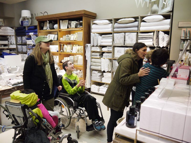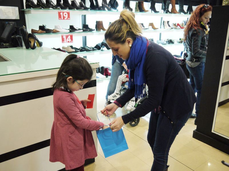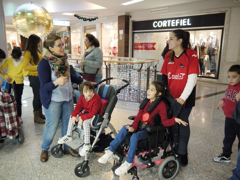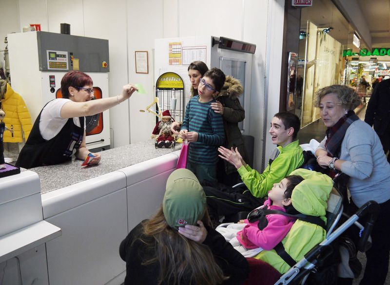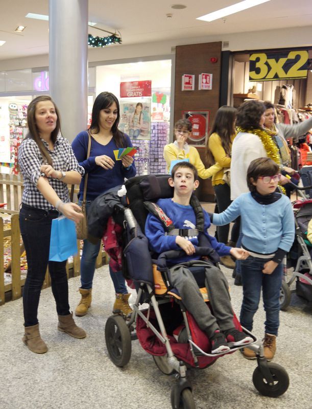 En varios equipos (rojo, amarillo, verde, azul y rosa), los niños de Aspace han recorrido algunas de las tiendas y restaurantes del Centro Comercial El Tormes en busca de pistas y de objetos para decorar el árbol de Navidad de su centro en Salamanca.