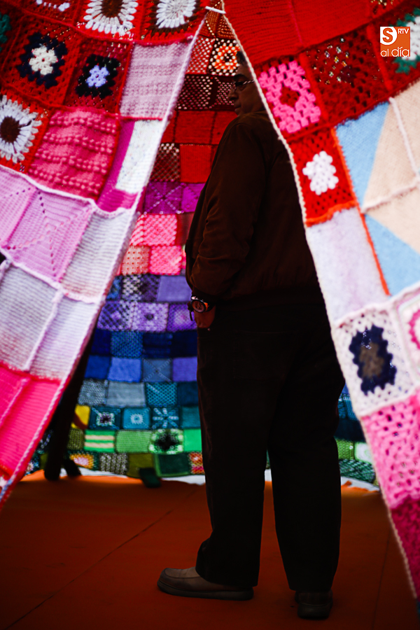 El 'Gender Tipi' es mucho más que un tipi tejido en ganchillo. Es una representación simbólica que destaca las contribuciones y necesidades específicas de las mujeres en relación con su hábitat y desarrollo urbano. El espacio creado, su producción, los materiales y los colores utilizados representan la hospitalidad, la movilidad, la tolerancia y la paz.