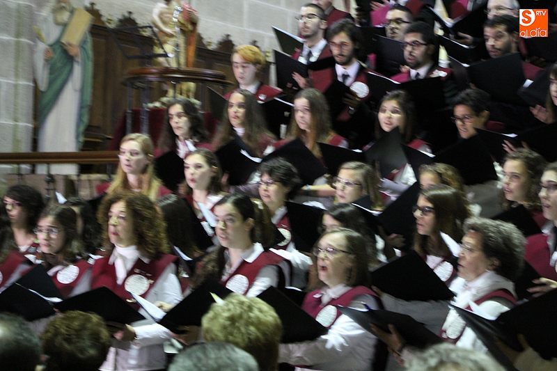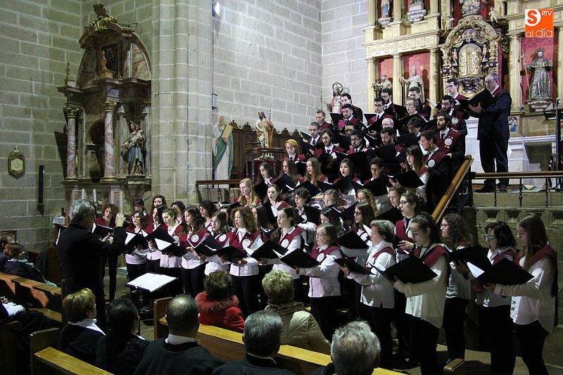 La acústica de la catedral del Abadengo contribuyó a la excelente interpretación de sendos grupos. El Coro Popular de Lumbrales ponía en escena villancicos populares cantados en castellano y bajo la dirección de Ángel Miguel García, mientras que el Coro de la Usal interpretaba villancicos tradicionales de varios países centroeuropeos y canciones de cuna bajo la dirección de Bernardo García-Bernalt Alonso.