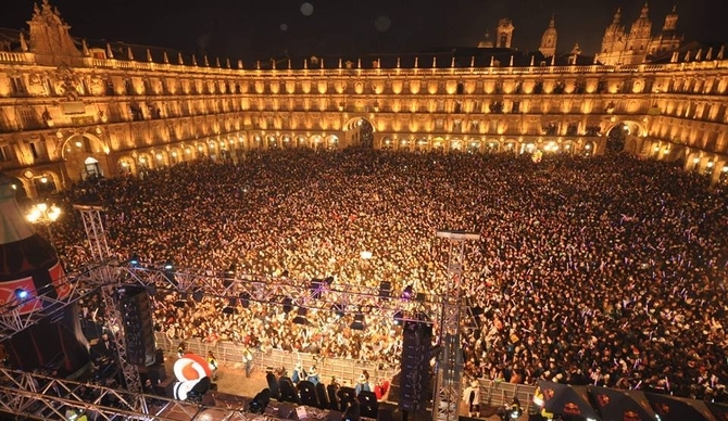 El espectáculo musical de la Plaza Mayor, con Fonsi Nieto como invitado especial, comenzará con 2 DJ's locales, Mario Salcedo y Víctor González, que serán los primeros en poner en marcha la gran fiesta. A continuación será el turno del saxofonista Derek Mc Ardle y la violinista Miss Bow, mientras que, posteriormente, la orquesta Kronos, será quien se encargue de seguir amenizando los momentos previos y posteriores a las campanadas, desde las 22 horas hasta después de las campanadas que darán la bienvenida al nuevo año universitario.