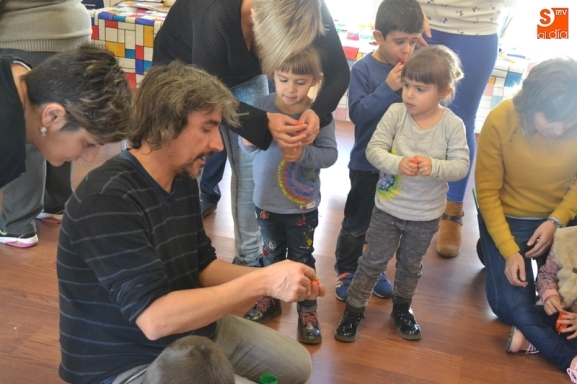 Como primera actividad de la nueva etapa del programa, en la mañana del domingo fue turno para construir unos sencillos juguetes artesanales con materiales cotidianos (como globos, vasos o pajitas), bajo la dirección del artista plástico Fernando Fonticoba.
