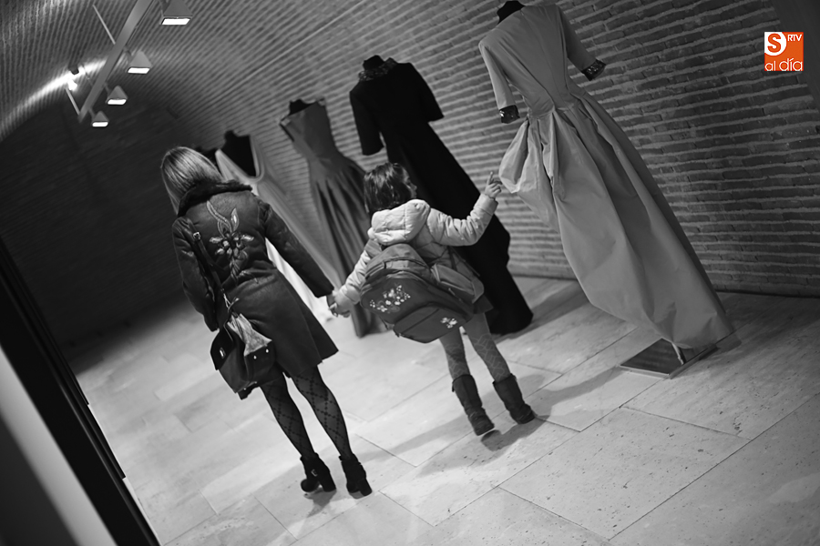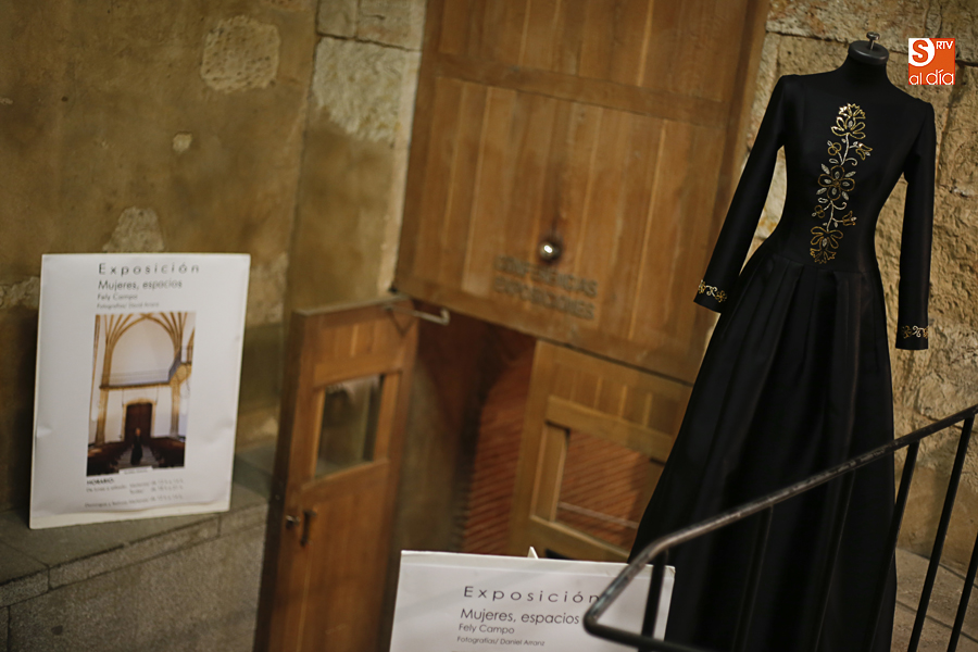 La sala de exposiciones de la Casa de las Conchas muestra 'Mujeres, espacios', de la diseñadora salmantina Fely Campo. Con fotografías de David Arranz, Fely Campo ha creado una colección de 12 vestidos de noche para el calendario solidario de la AECC y tanto los vestidos como las fotografías se mostrarán hasta el 8 de enero. El calendario, con 3.000 ejemplares, cuesta cinco euros. Además, tanto las fotografías como los vestidos serán subastados en las redes sociales y lo que se recaude también se destinará para la lucha contra el cáncer.