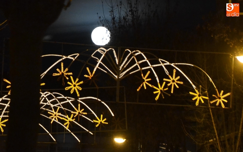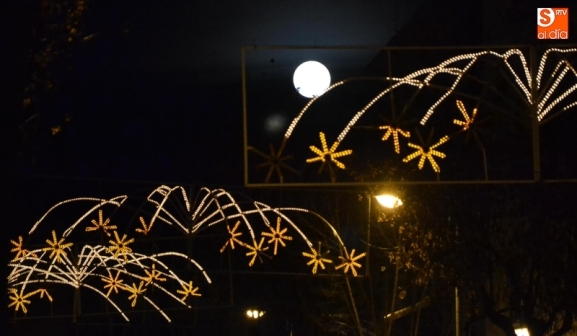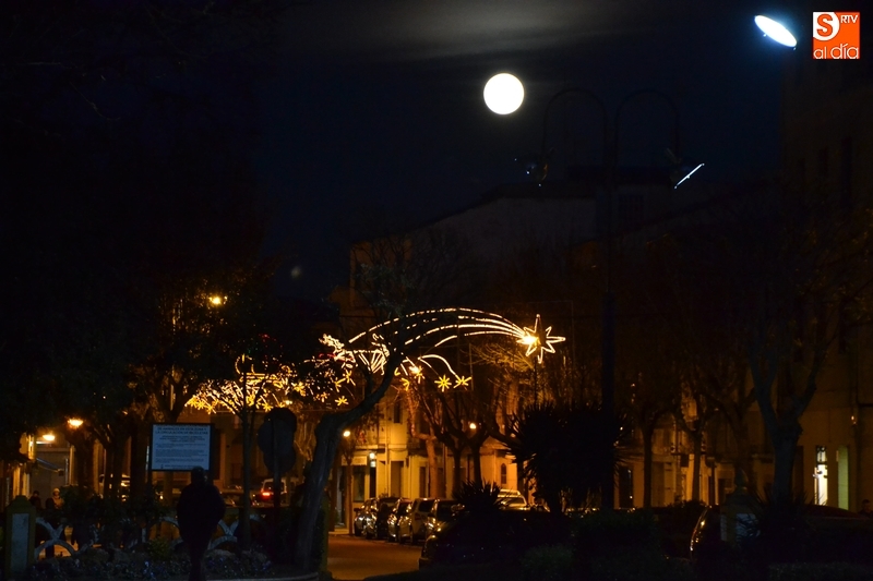 En esta ocasión, la aparición de la súperluna (según dicen los expertos, la última hasta 2034), está acompañada de la presencia en las calles del alumbrado navideño, lo que da pie a intentar nuevas composiciones fotográficas jugando con esas estructuras y la súperluna.