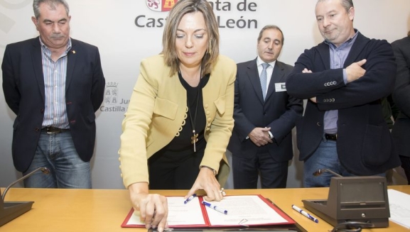 Representantes de organizaciones de productores agrarios y la consejera de Agricultura y Ganadería, Milagros Marcos, han firmado un manifiesto por el que rechazan la medida propuesta por el Gobierno central de incorporar un impuesto especial a las bebidas carbonatadas y azucaradas, y solicitan que se retire la propuesta anunciada por el ministro de Hacienda y Función Pública, Cristóbal Montoro.