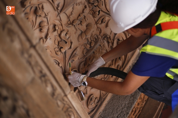 En los próximos días, antes de retirar definitivamente el andamio se realizará una revisión de las tareas desarrolladas en la Portada Rica, consistentes en la limpieza, restauración de los pináculos, eliminación de sales, reintegración volumétrica y armonización cromática del conjunto.