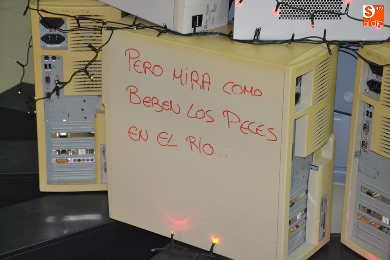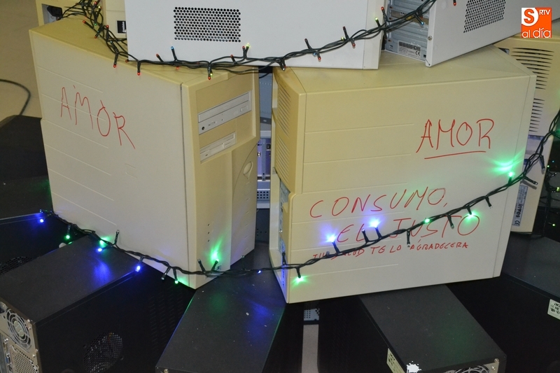 CIUDAD RODRIGO | Está hecho a base de torres de ordenador, en las que se han escrito varios mensajes, incluido un deseo de 'Aprobar geografía'