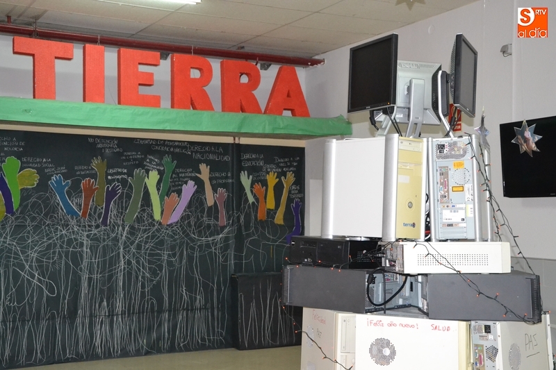 Después de que en años anteriores, por ejemplo, creasen árboles a base de libros o de cucuruchos de papel, este año han creado un montaje totalmente tecnológico, a base de torres de ordenador, que son coronadas con varias pantallas. Estas torres y pantallas han sido rodeadas con luces completándose el montaje con estrellas colgadas del techo.