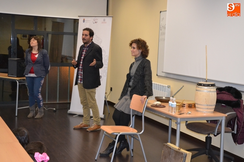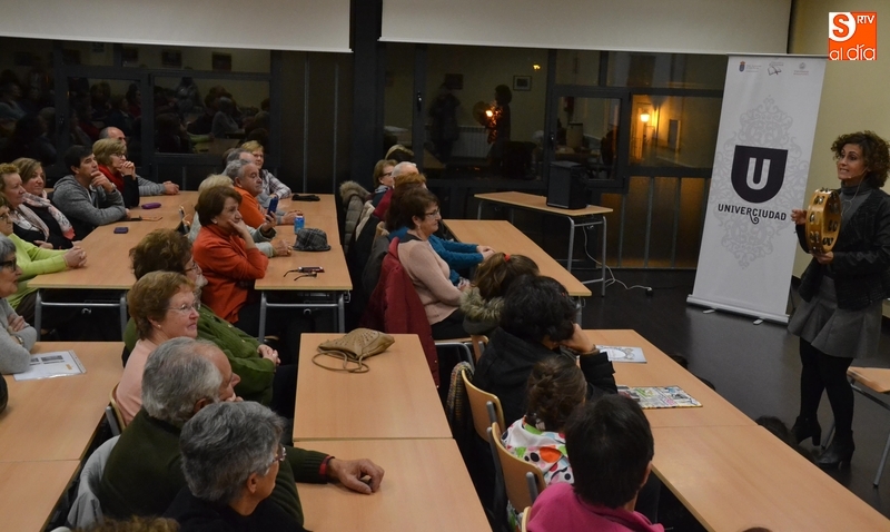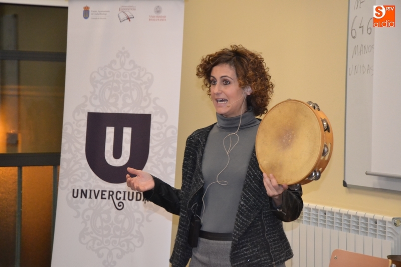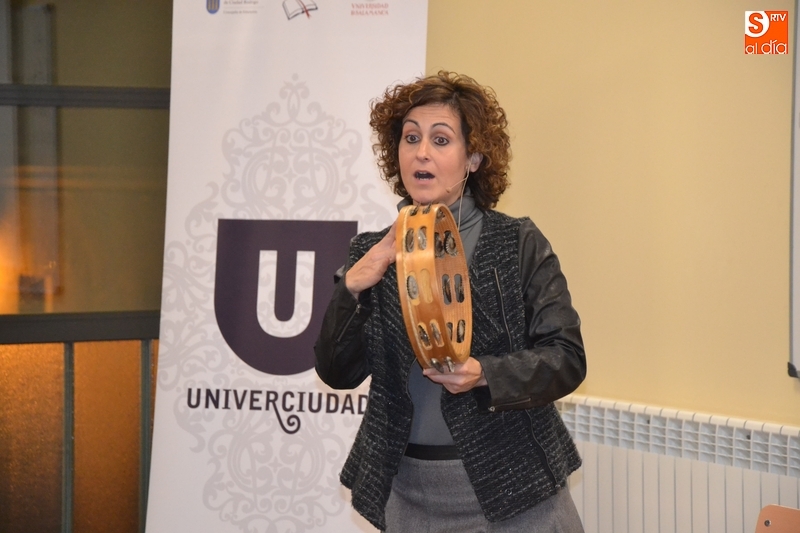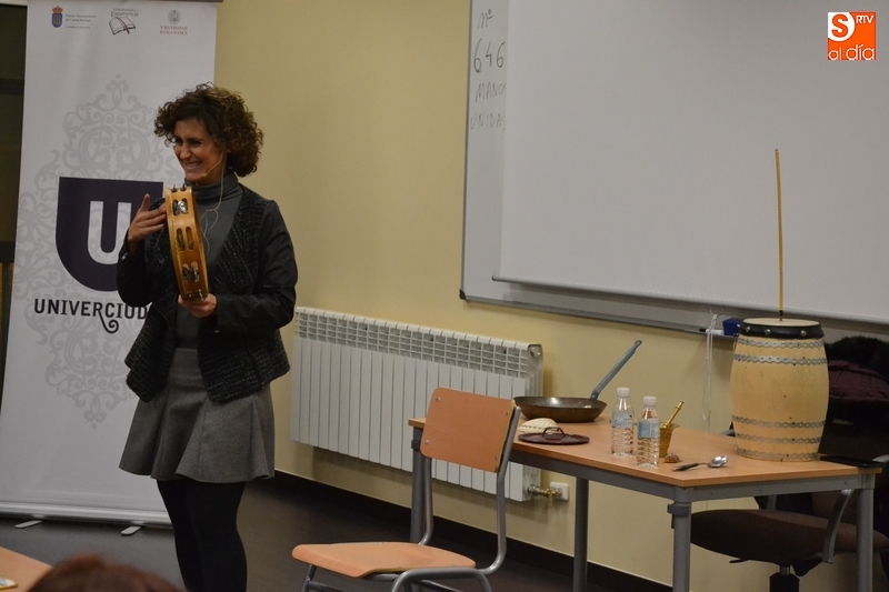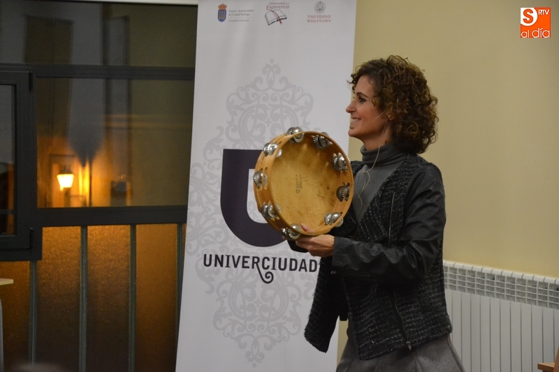 Durante la sesión, Vanesa Muela empleó la pandereta, la zambomba o la sartén, para ir haciendo un repaso por los ritmos más característicos de la música tradicional de todas las provincias de Castilla y León. La sesión se desarrolló con un tono muy distendido que maravilló a todos los presentes, que también participaron aportando detalles a la sesión.