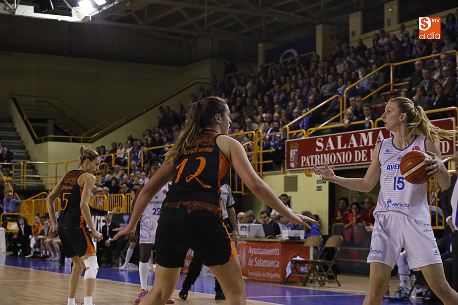 El choque comenzó cuesta arriba para las salmantinas que tardaron casi tres minutos en anotar, aunque las francesas no aprovecharon esta circunstancia, si bien su defensa era difícil de superar (2-4). El partido iba a guarismos bajos (6-6, min. 6). Con Salvadores y De Sousa en escena Avenida se despegó un poco en el electrónico dejando el primer cuarto en un 16-13 para las locales.