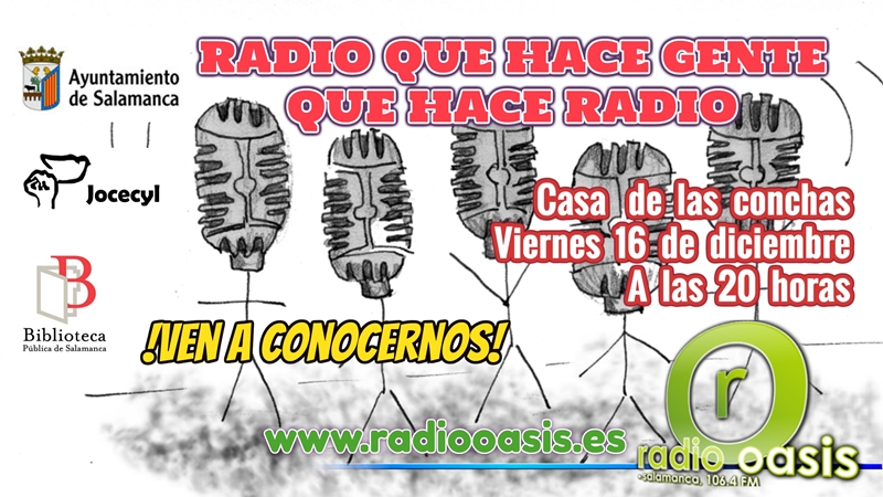 Este viernes, a las 20.00 horas, en la Casa de las Conchas, Radio Oasis ofrecerá un programa en directo "para visualizar la radio comunitaria de Salamanca", explican los promotores.