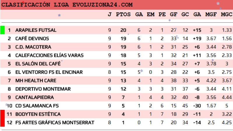 Gran jornada para EL SALÓN DEL CAFÉ y para EL VENTORRO FS EL ENCINAR en la Liga Evoluziona24.com debido a que lograron vencer en sus enfrentamientos y que además, ninguno de los cuatro primeros clasificados lograron ganar.
