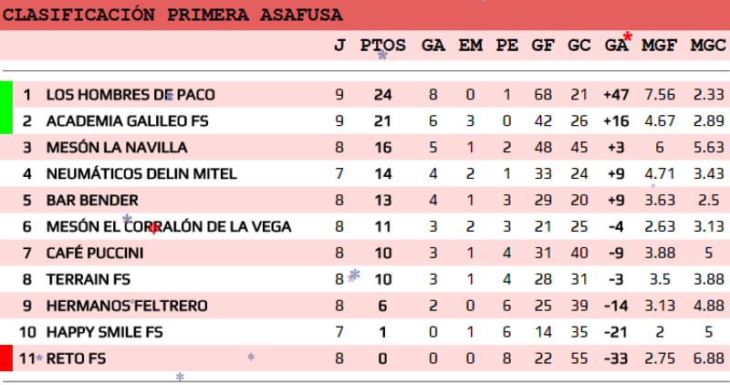 La última jornada del año 2016 en esta Primera Asafusa, nos dejó como los mayores beneficiados, a los dos primeros clasificados. LOS HOMBRES DE PACO vencieron 7-2 a TERRAIN FS en la jornada adelantada al miércoles pasado.