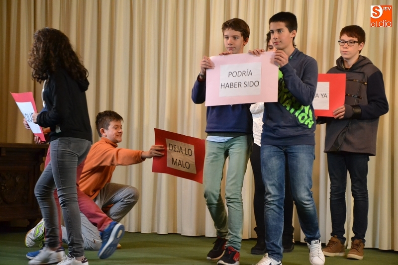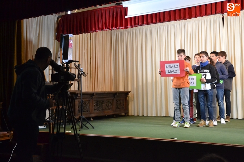 La grabación fue promovida por la Asociación de Madres y Padres del Centro, que fue recibiendo en el salón de actos por grupos a los alumnos, que realizaron distintas acciones delante de la cámara de Contracorriente Producciones.