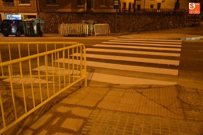 Como paso 'final', en la mañana del martes se movió unos metros el paso de cebra que había, que ahora enlaza con la nueva zona de acera. En este sentido, se pintaron las líneas del nuevo paso, y se suprimió el antiguo pintándolo completamente de negro.