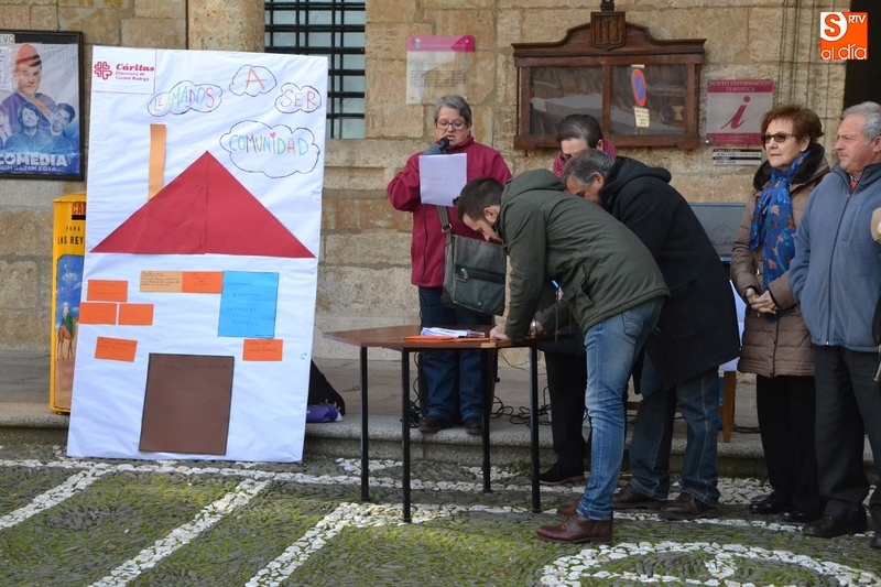 Cáritas Diocesana llevó a cabo en la mañana del martes en la Plaza Mayor de Ciudad Rodrigo el acto principal de su campaña navideña 2016, que tiene por título Llamados a ser Comunidad. Ese acto consistió en la 'construcción' de una nueva Casa Común, a base de ladrillos en los que se reflejan las ideas, valores y compromisos que debería tener la sociedad actual para seguir avanzando.