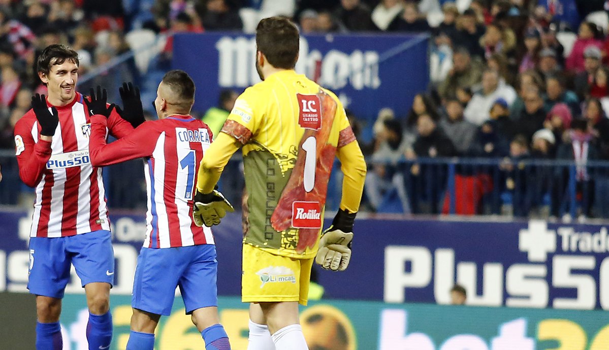 Goles: 1-0 17' Nico Gaitán, 2-0 22' Correa, 3-0 29' Juanfran, 4-0 45' Fernando Torres, 4-1 79' Pino.