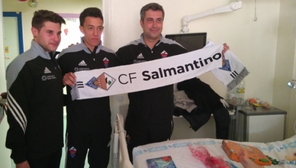 Casi una veintena de agentes de policía y jugadores del Salmantino, junto a su entrenador, han visitado a los menores ingresados para desearles una feliz Navidad, preocuparse por su estado y divertirles con juegos de magia y regalos individuales, adaptados a la edad de los pequeños, además un detalle elaborado por voluntarios de la AECC, bufandas del equipo deportivo y pases para ver partidos de fútbol en el estadio Helmántico.
