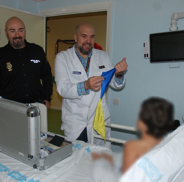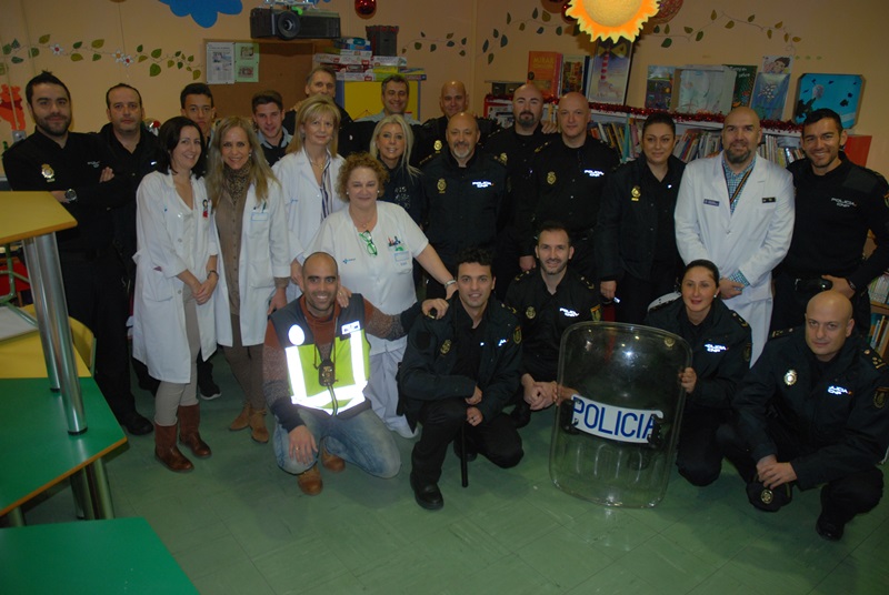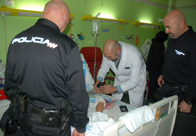 En esta visita navideña, los policías han entregado también material escolar y juegos educativos para la escuela del Complejo Asistencial, donados por la empresa "Nazario e hijos", y han aprovechado para acercar el día a día de su profesión a los niños ingresados en el hospital.