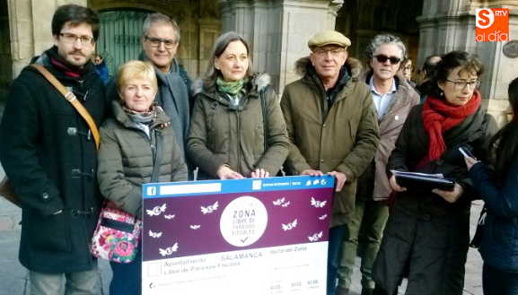 Este miércoles, en la Plaza Mayor, Oxfam Intermón ha presentado la iniciativa Zonas Libres de Paraísos Fiscales, en un acto en el que contaban con el respaldo de algunos concejales del PSOE y de Ganemos Salamanca. El objetivo es instar al Consistorio de la capital para que apruebe una moción por la que se comprometa a ser Zona Libre de Paraísos Fiscales e incorpore en sus políticas de contratación pública criterios que incentiven un comportamiento fiscal más responsable por parte de las empresas licitadoras. La próxima semana se llevará al pleno del Ayuntamiento y este viernes al de la Diputación.